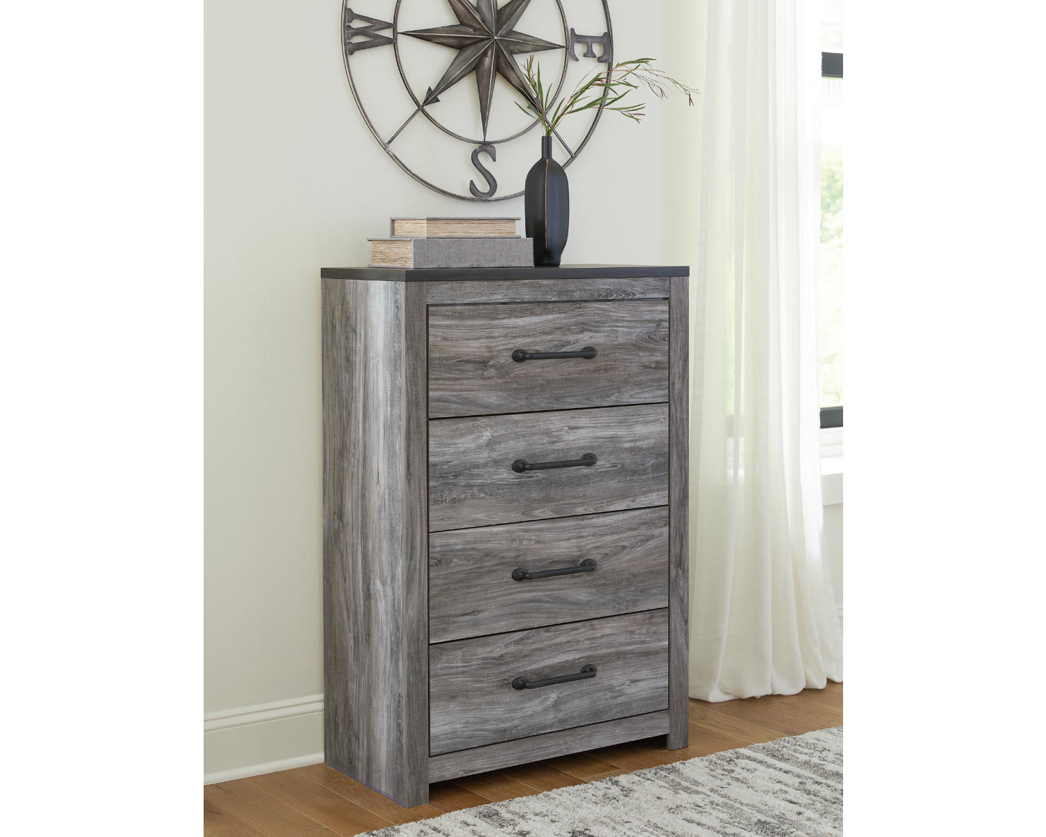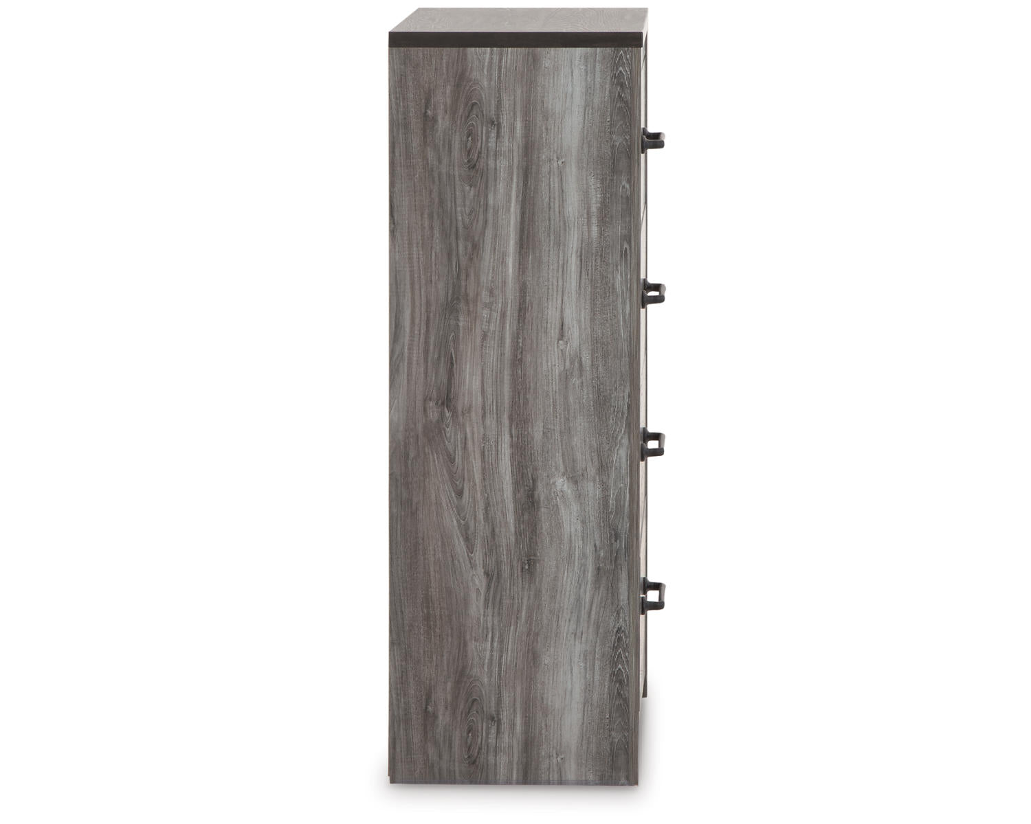 The Bronyan Chest of Drawers is a four-drawer storage piece designed for bedrooms, guest rooms, or compact living spaces. With a dark gray finish, it brings clean lines and practical storage to a variety of decors. This dresser offers straightforward organization without sacrificing style.