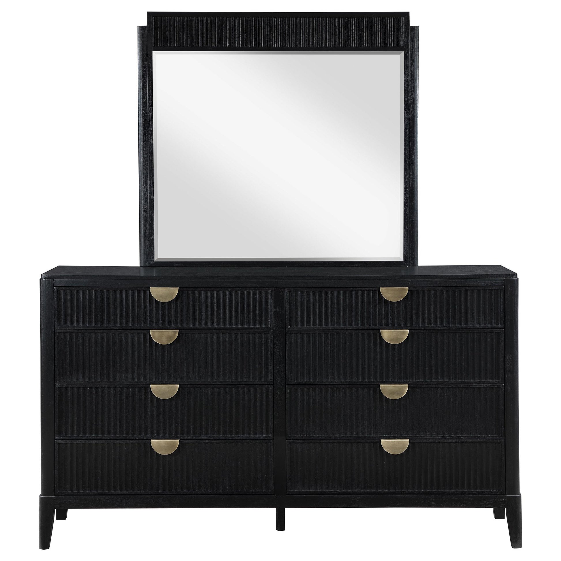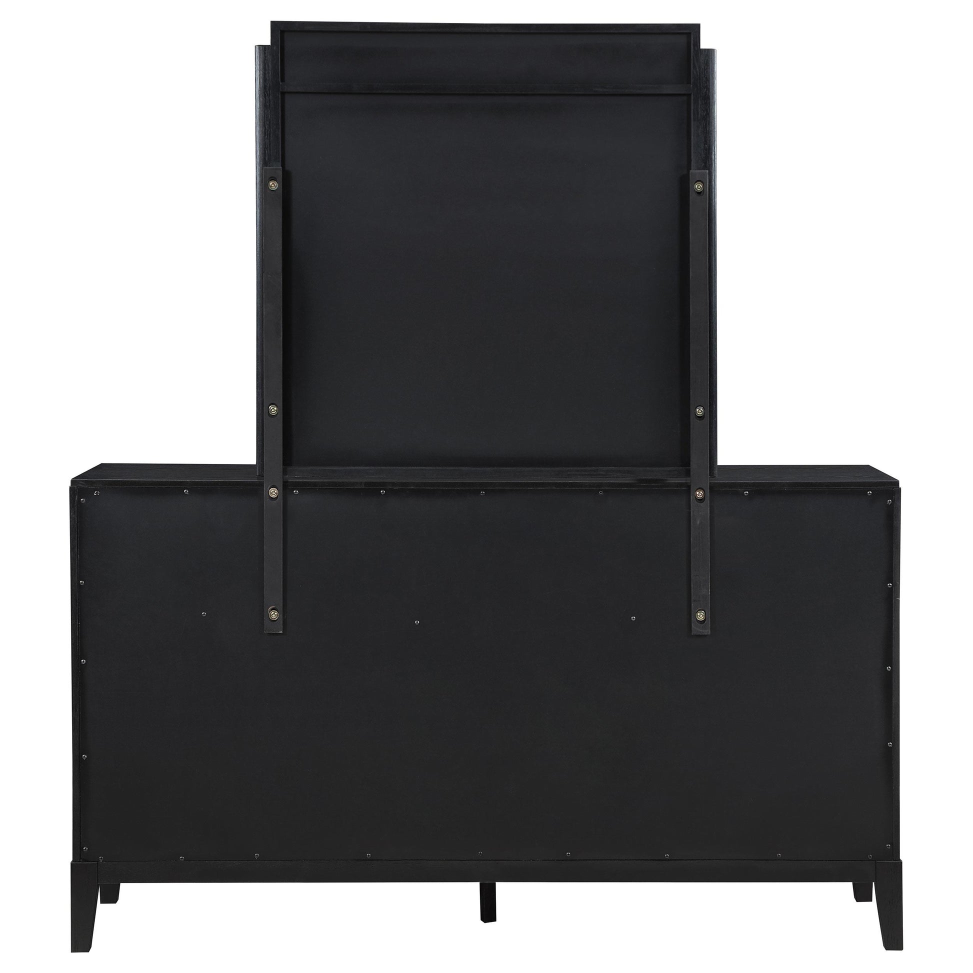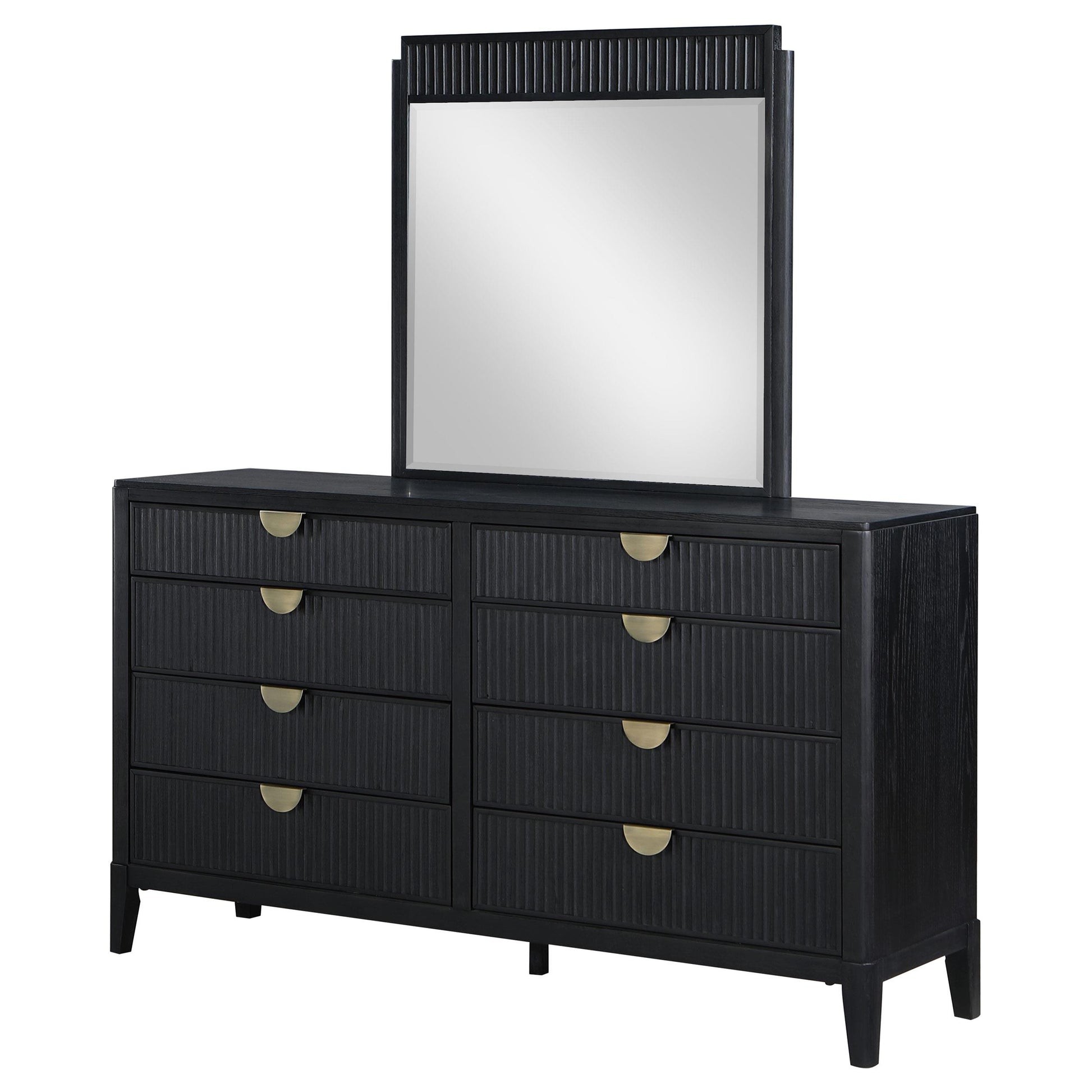 Meet the Brookmead 8-drawer Dresser with Mirror in Black — a versatile storage piece designed for modern bedrooms. It combines eight roomy drawers with a built-in mirror to simplify dressing and organization. This dresser offers clean lines, a refined finish, and practical storage that adapts to everyday life.