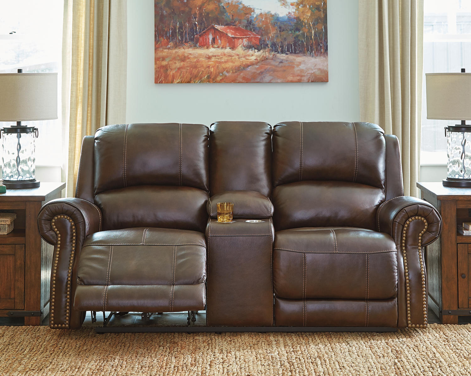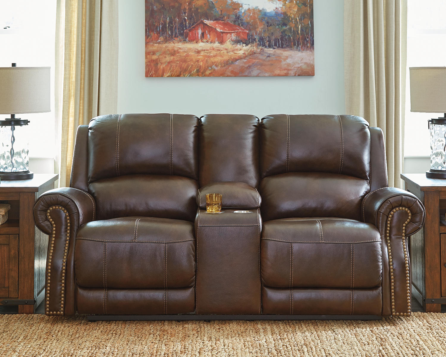 Discover the Buncrana Power Reclining Loveseat with Console—a versatile, contemporary seating solution for everyday living. Designed for couples, small families, or anyone who values effortless comfort, this piece blends power reclining, an adjustable headrest, and a convenient console in a rich chocolate finish.