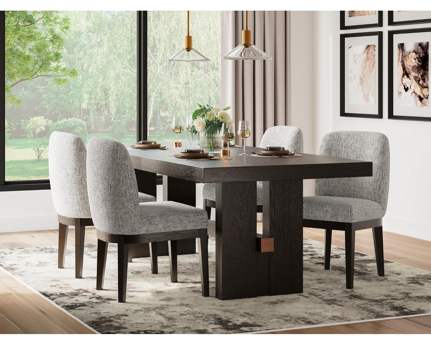 - Includes: a dining table and four matching chairs for a ready-to-use seating arrangement.