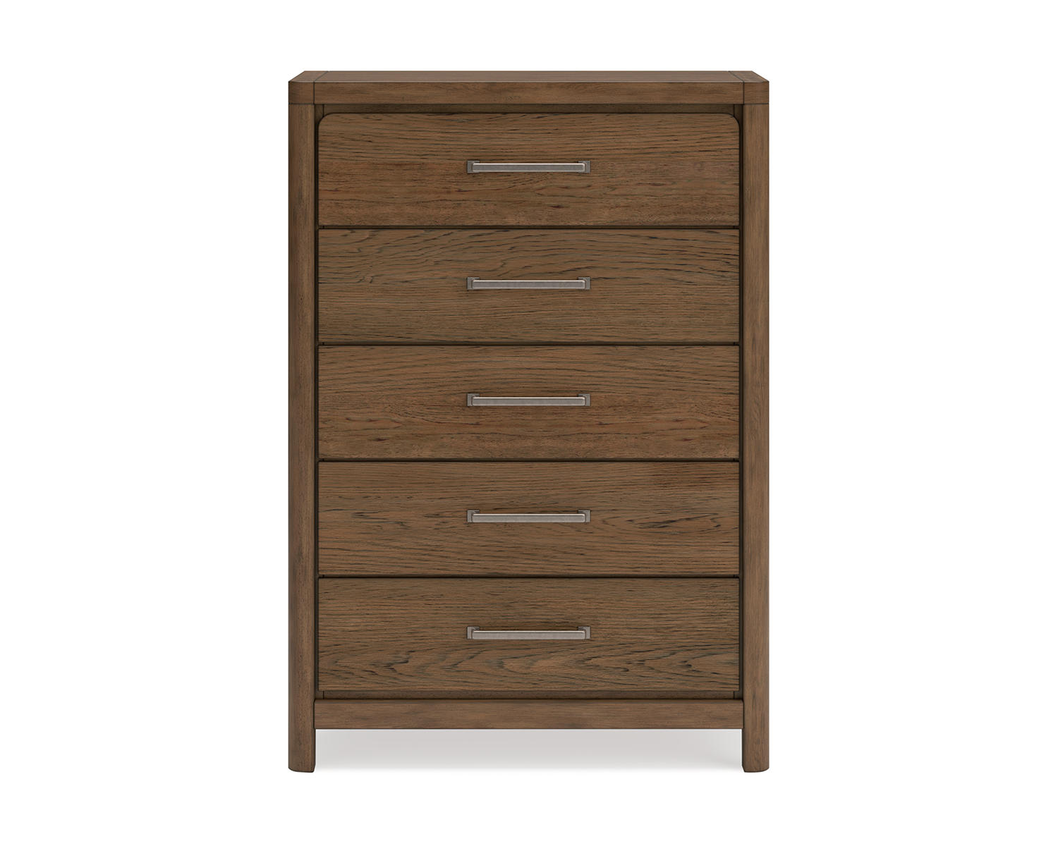 Meet the Cabalynn Chest of Drawers, a practical storage solution designed for bedrooms and spaces that need organized storage. Featuring a light brown finish, it blends clean lines with timeless appeal, making it a versatile addition for bedrooms, guest rooms, or entryways. This chest helps you declutter with style and ease.