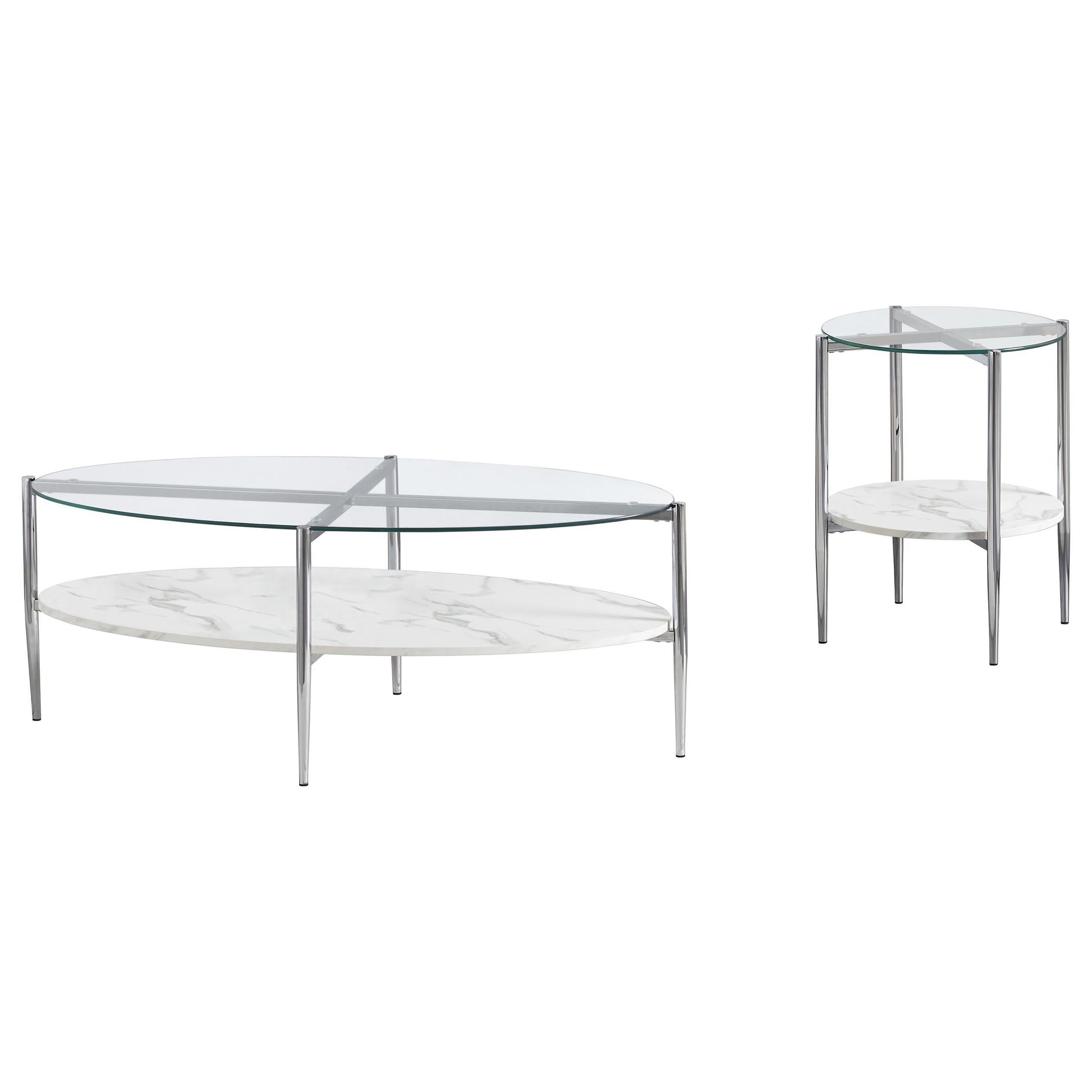Cadee 2-piece Oval Coffee and End Table Set Chrome