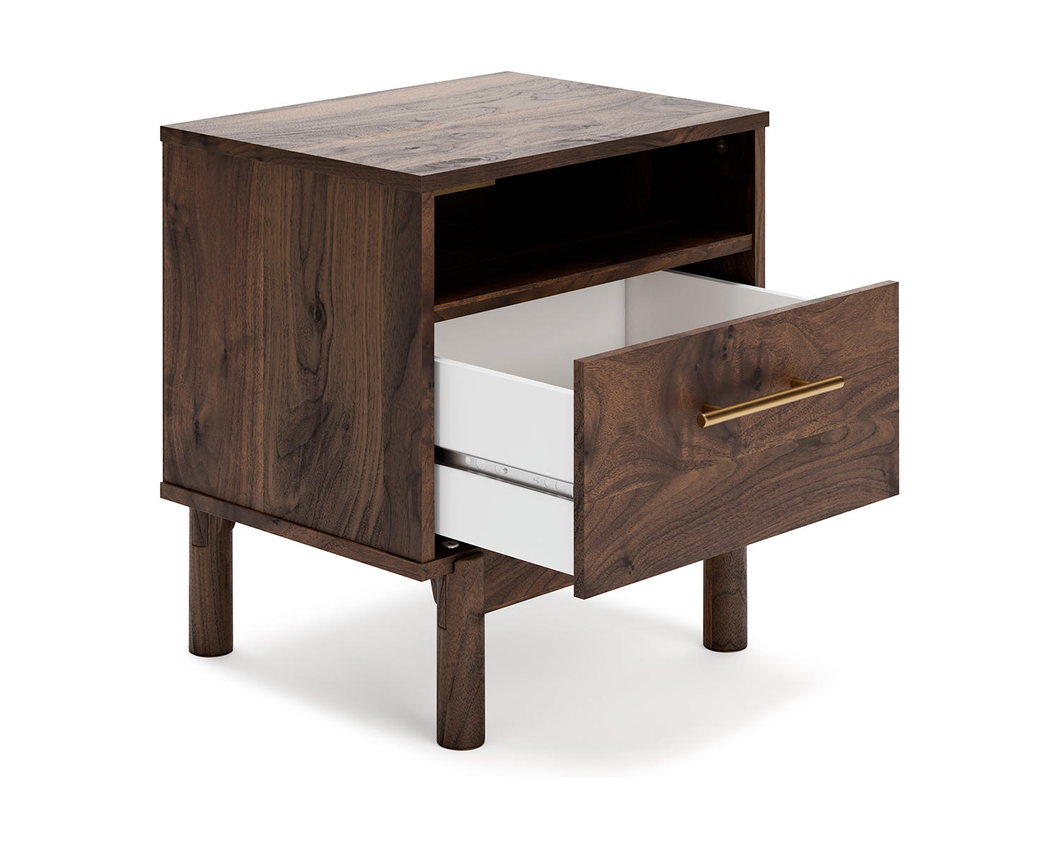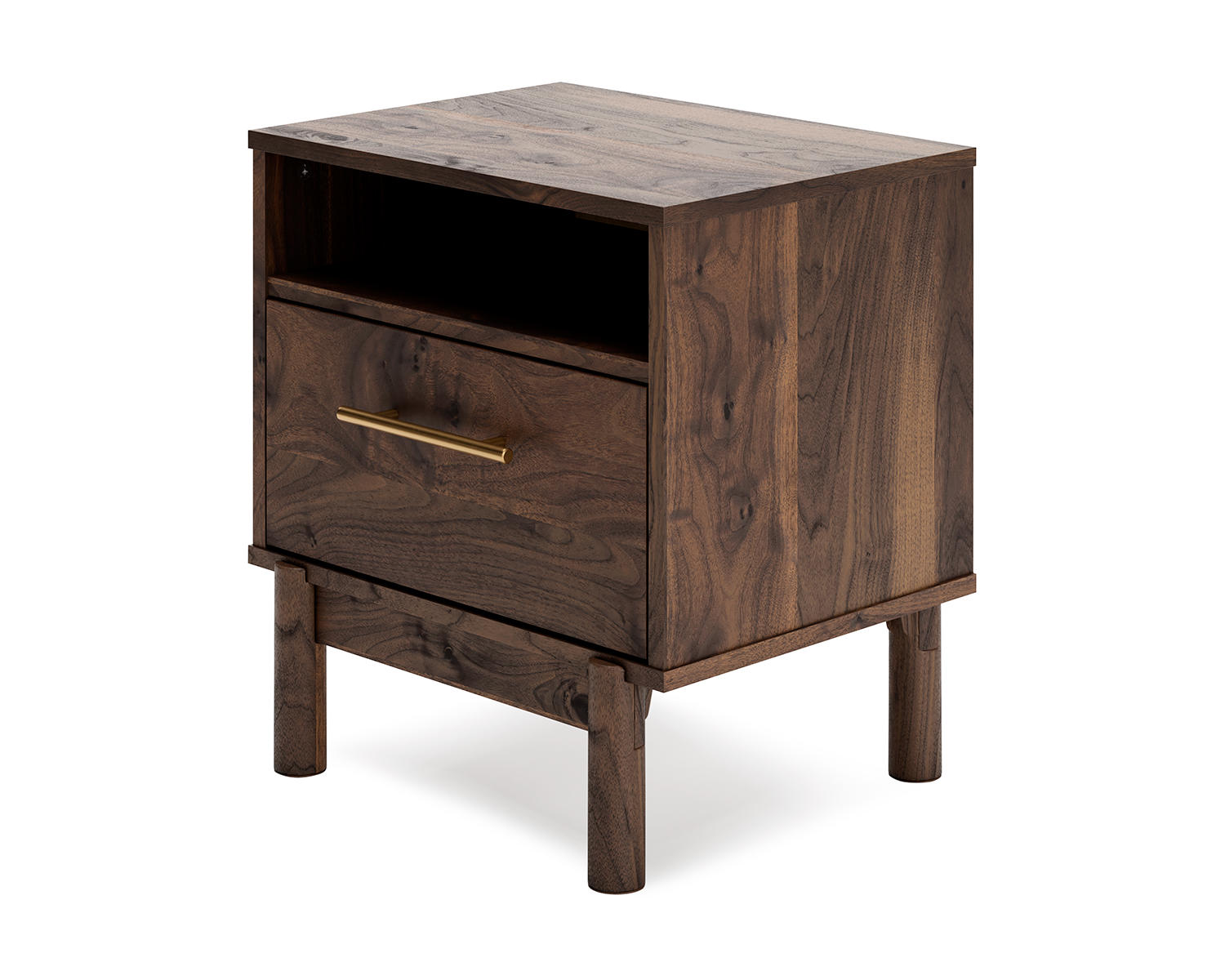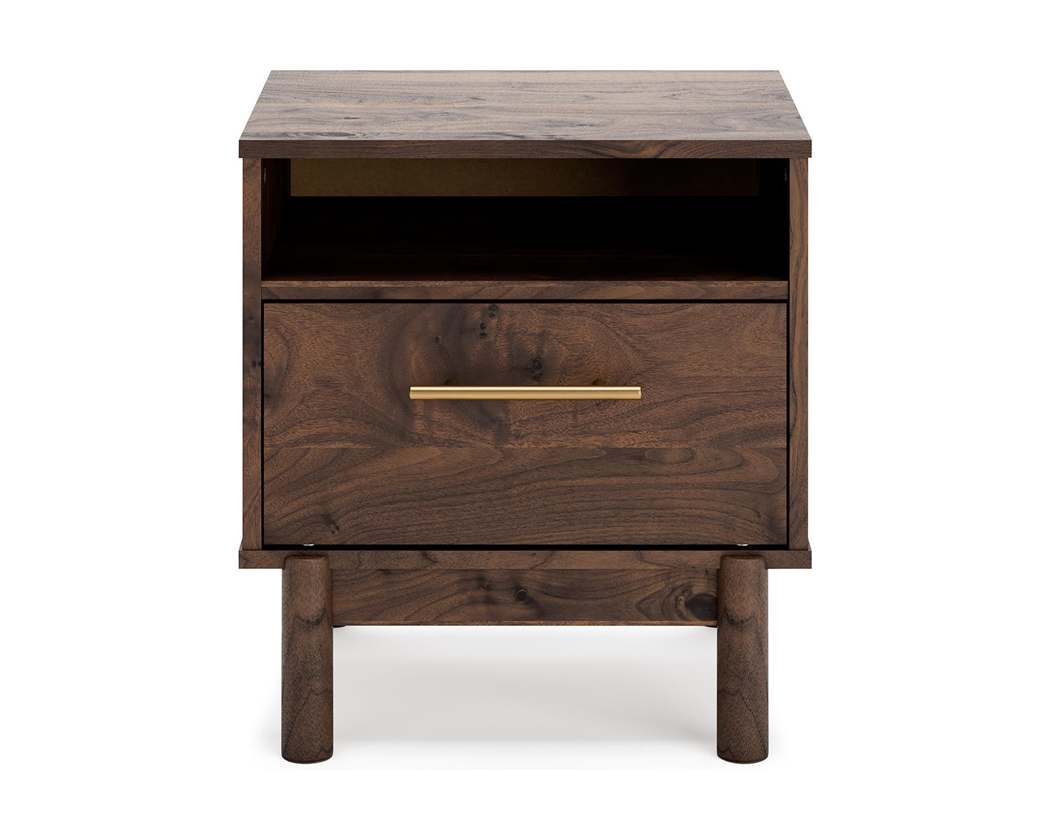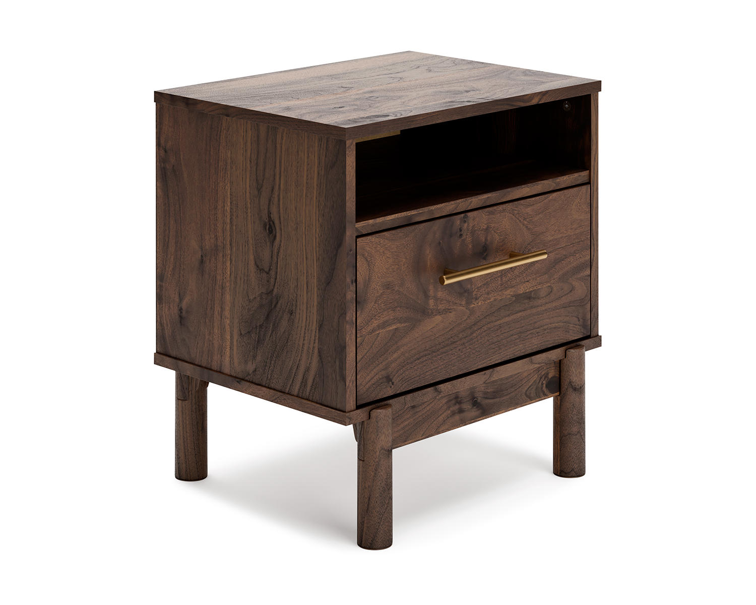 Meet the Calverson Nightstand, a compact, single-drawer bedside table finished in mocha. It’s designed for bedrooms that need simple, functional storage with a clean, versatile look. Perfect beside the bed or in a guest room, it combines practical storage with timeless style.