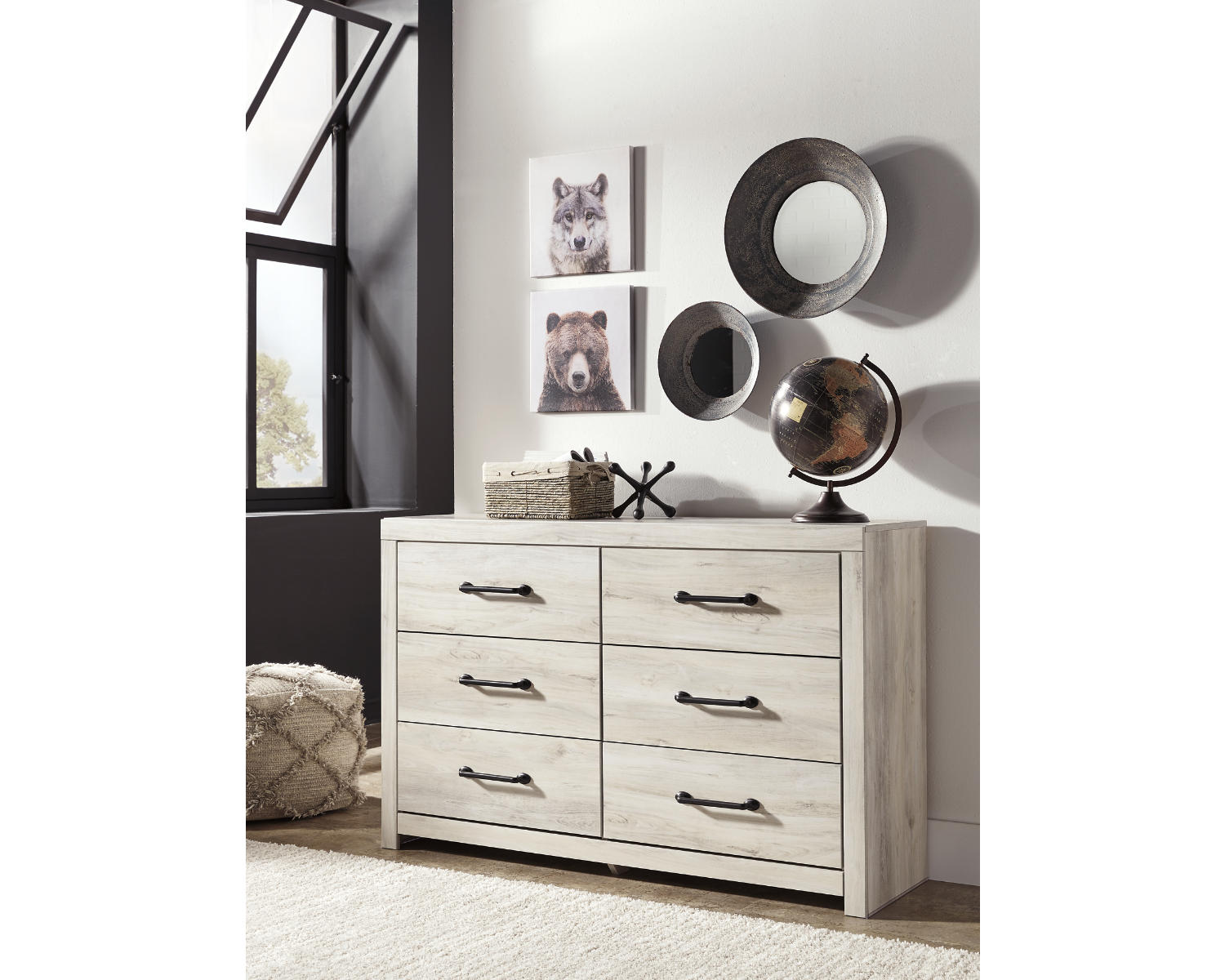 Discover the Cambeck Dresser, a six-drawer storage solution finished in a soft whitewash. Designed for bedrooms and guest spaces, it offers a clean, versatile look that pairs well with a range of decors. This dresser helps keep apparel, linens, and personal items neatly organized with understated style.