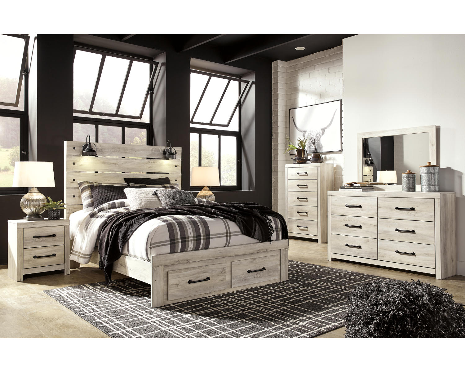 Meet Cambeck Queen Panel Bed with 2 Storage Drawers — a clean, versatile centerpiece for any bedroom. Designed for queen-size comfort, it blends a classic panel silhouette with practical storage. The whitewash finish adds brightness and warmth to modern and traditional décors.
