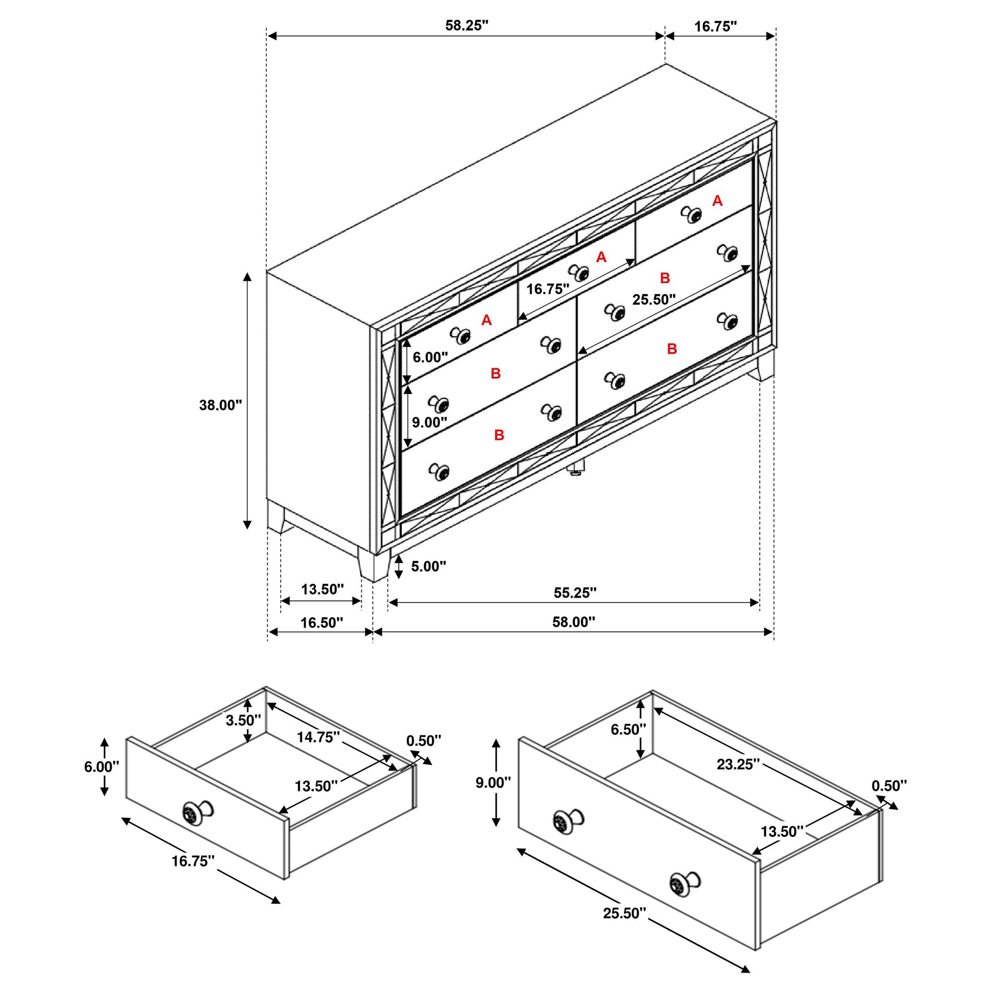 The Camille 5-piece Queen Bedroom Set in Metallic Mercury offers a contemporary, refined look for a stylish and cohesive bedroom. Designed for those seeking a complete, sophisticated update, this suite brings together form and function with a subtle metallic glow that enhances any space.