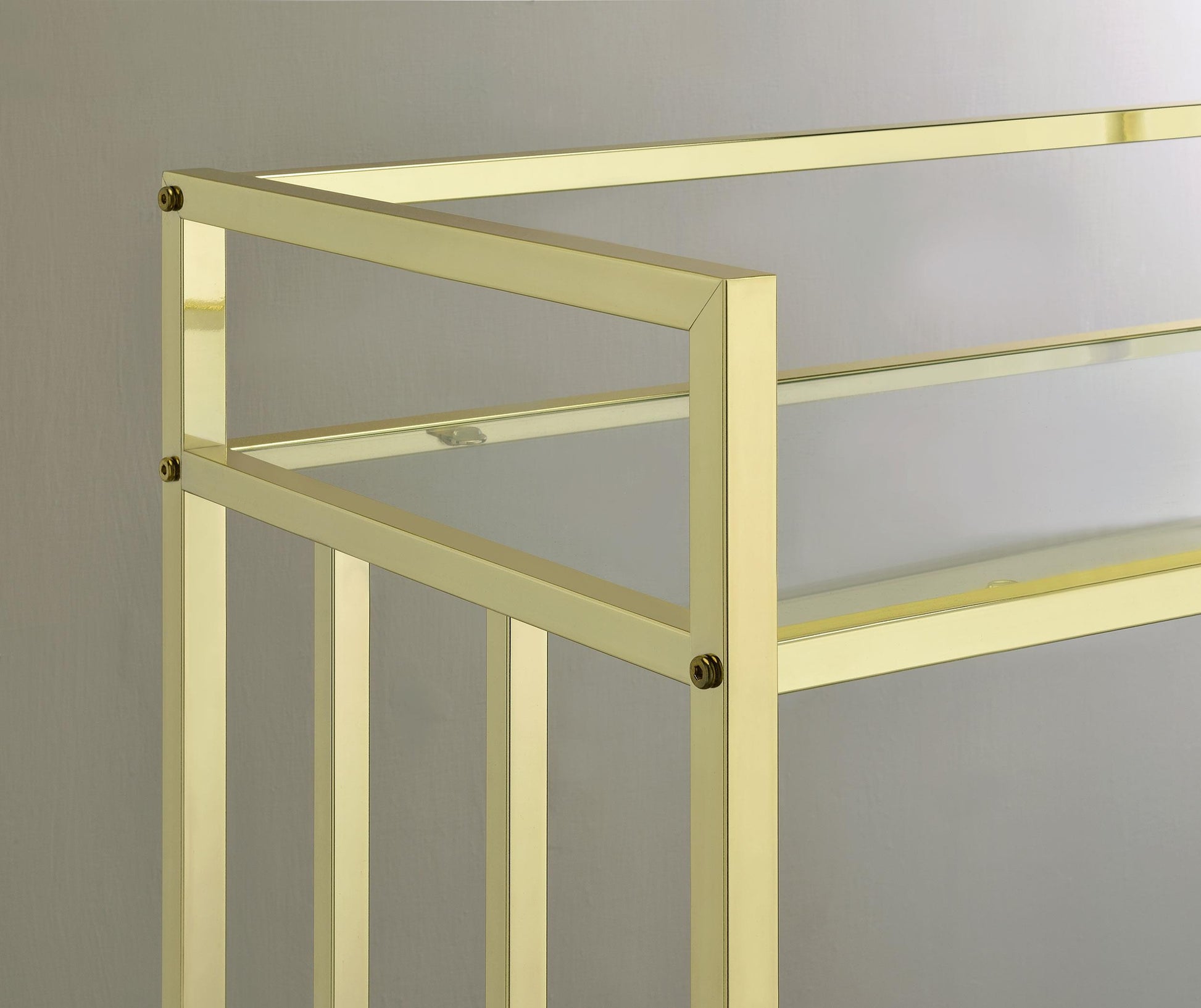 Cara 2-tier Rectangular Glass Shelf Metal Bar Cart Brass