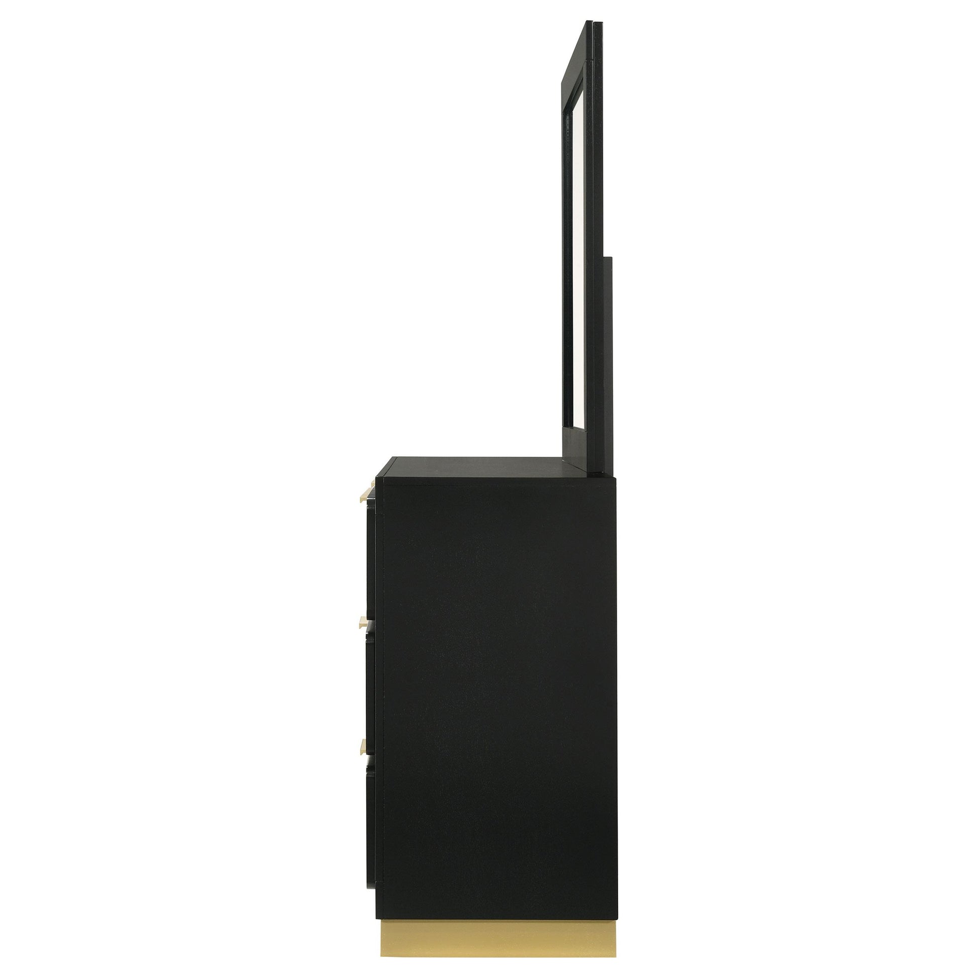 Meet the Caraway 6-drawer Dresser with Mirror in Black — a versatile storage solution for bedrooms and guest rooms. This piece blends practical organization with a clean, contemporary look, catering to those who value both function and style. The built-in mirror adds a convenient grooming space, streamlining your daily routine.