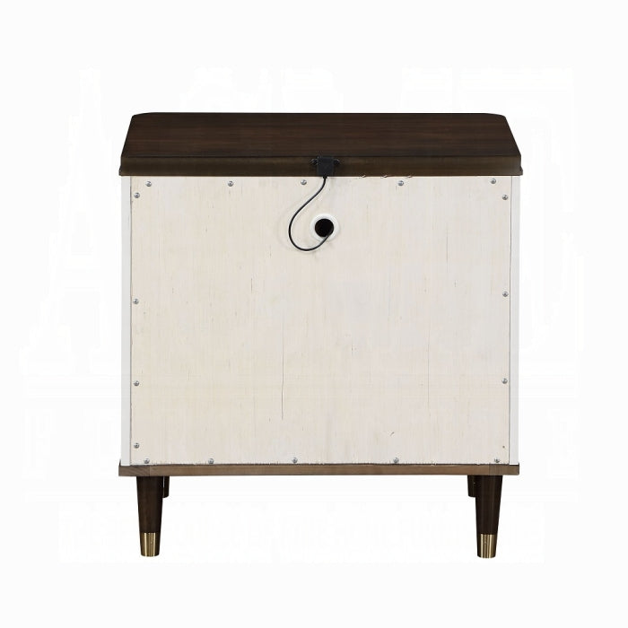 The Carena Nightstand with USB blends timeless design with modern function. Crafted to elevate your bedroom’s style and comfort, this piece offers a clean, inviting look with practical features. Its white and brown finish provides understated elegance that fits a range of decors.