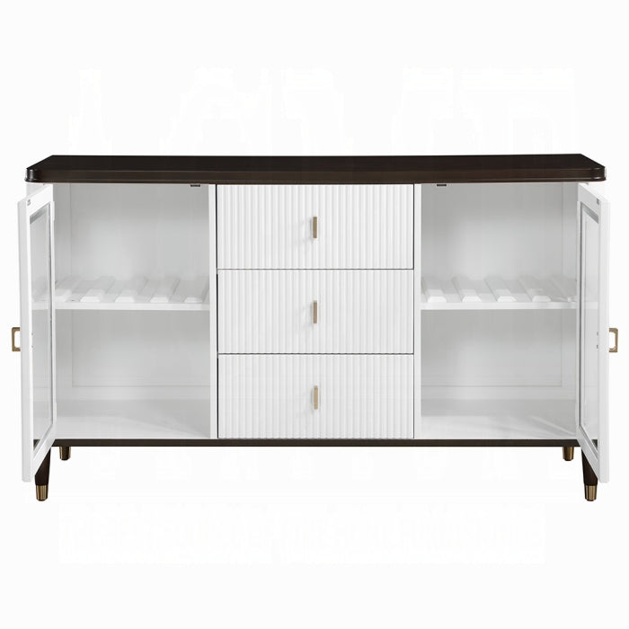 The Carena dining set exudes timeless elegance with a white and brown finish, delivering a refined look that suits both casual homes and formal dinners. Designed for entertaining and everyday dining, this collection pairs a rectangular dining table with an extension top, stylish side chairs, and a matching server for coordinated style and practical storage.