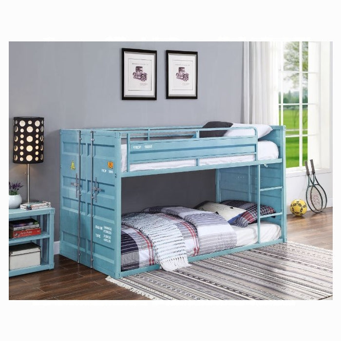 Designed for low-ceiling bedrooms, the Cargo Twin over Twin Bunk Bed offers practical, space-saving comfort for shared kids’ rooms. Its whimsical shipping container-inspired design pairs with a sturdy metal frame to deliver a stylish, durable sleep solution. The built-in slat system means no bulky box springs are needed, keeping the bed neat and comfortable.
