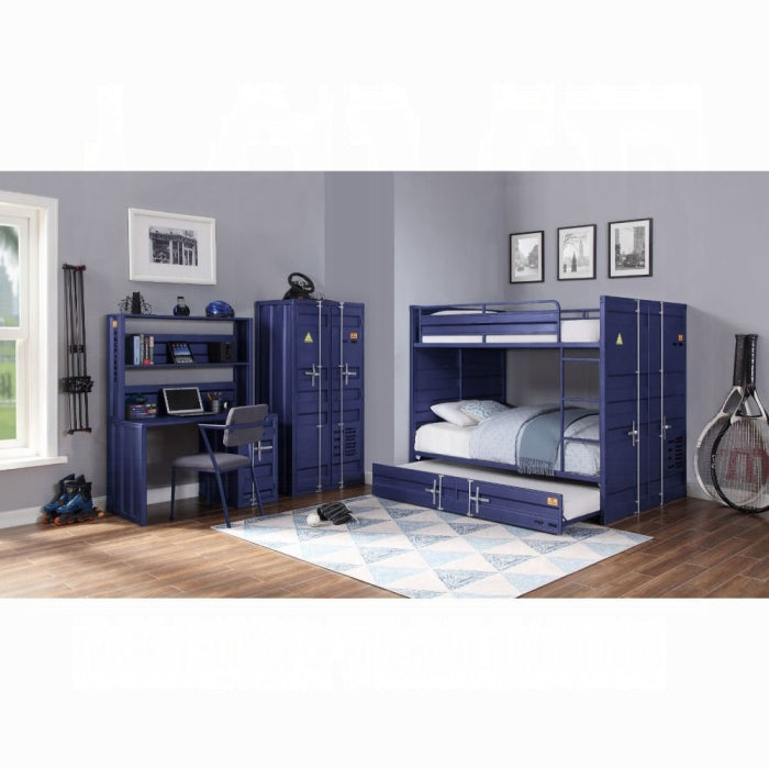 The Cargo bunk bed with trundle is the perfect addition to a child’s room. This twin-over-twin bunk features a contemporary, container-themed metal frame with an industrial look that suits modern decor. Accented by a recessed panel design and an understated finish, it blends practicality with a stylish, timeless feel for growing families.