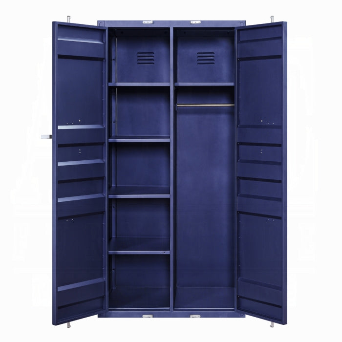 Cargo Wardrobe — Blue Iron Storage Wardrobe with Hanging Rod and Five Open Compartments