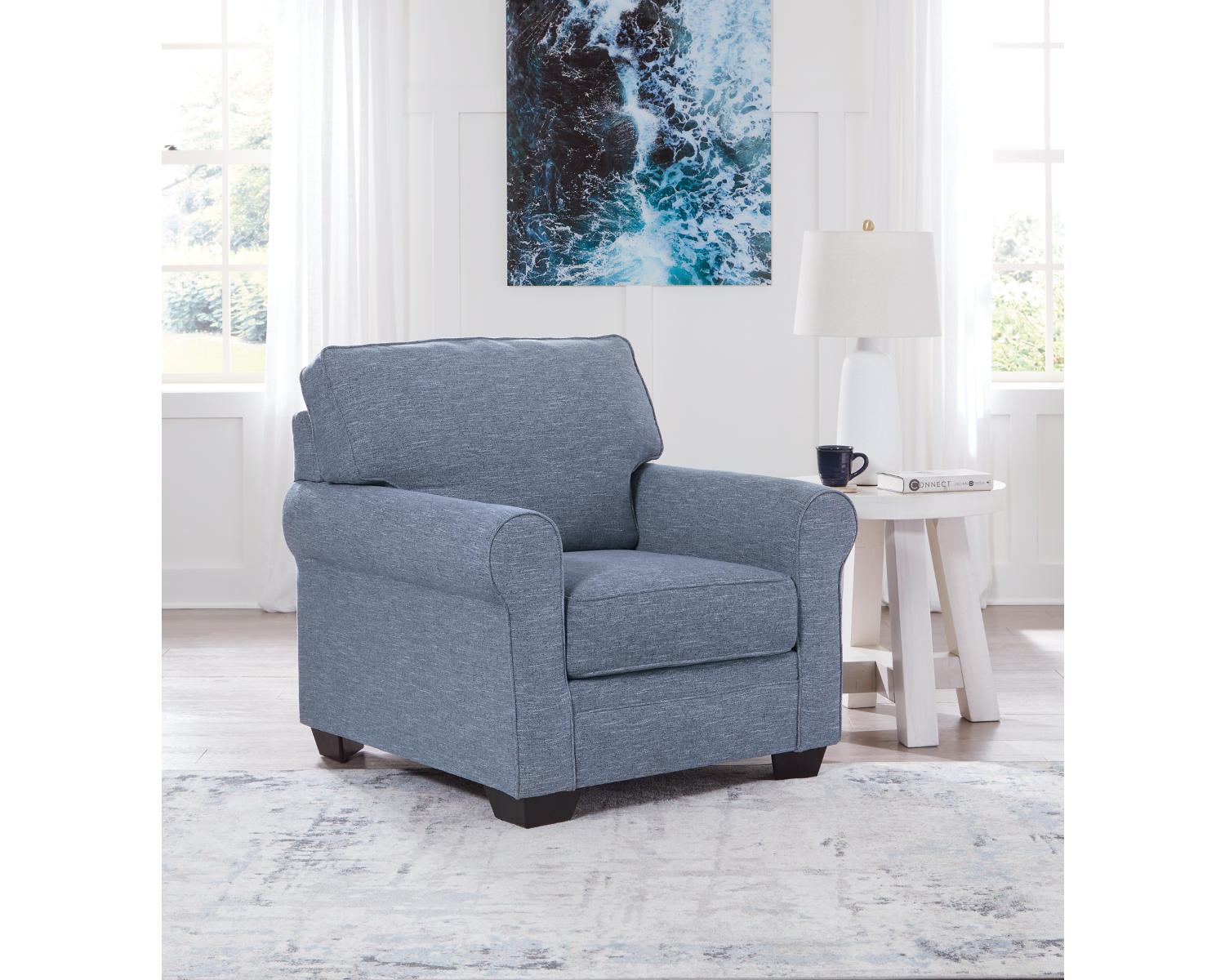 The Carissa Manor Chair is built to withstand daily use, featuring a sturdy frame and durable denim fabric designed for long-lasting wear. It combines comfort with practical maintenance, making it a dependable choice for busy homes. With its competitive price point, this chair offers strong value compared with similar seating options in its category.