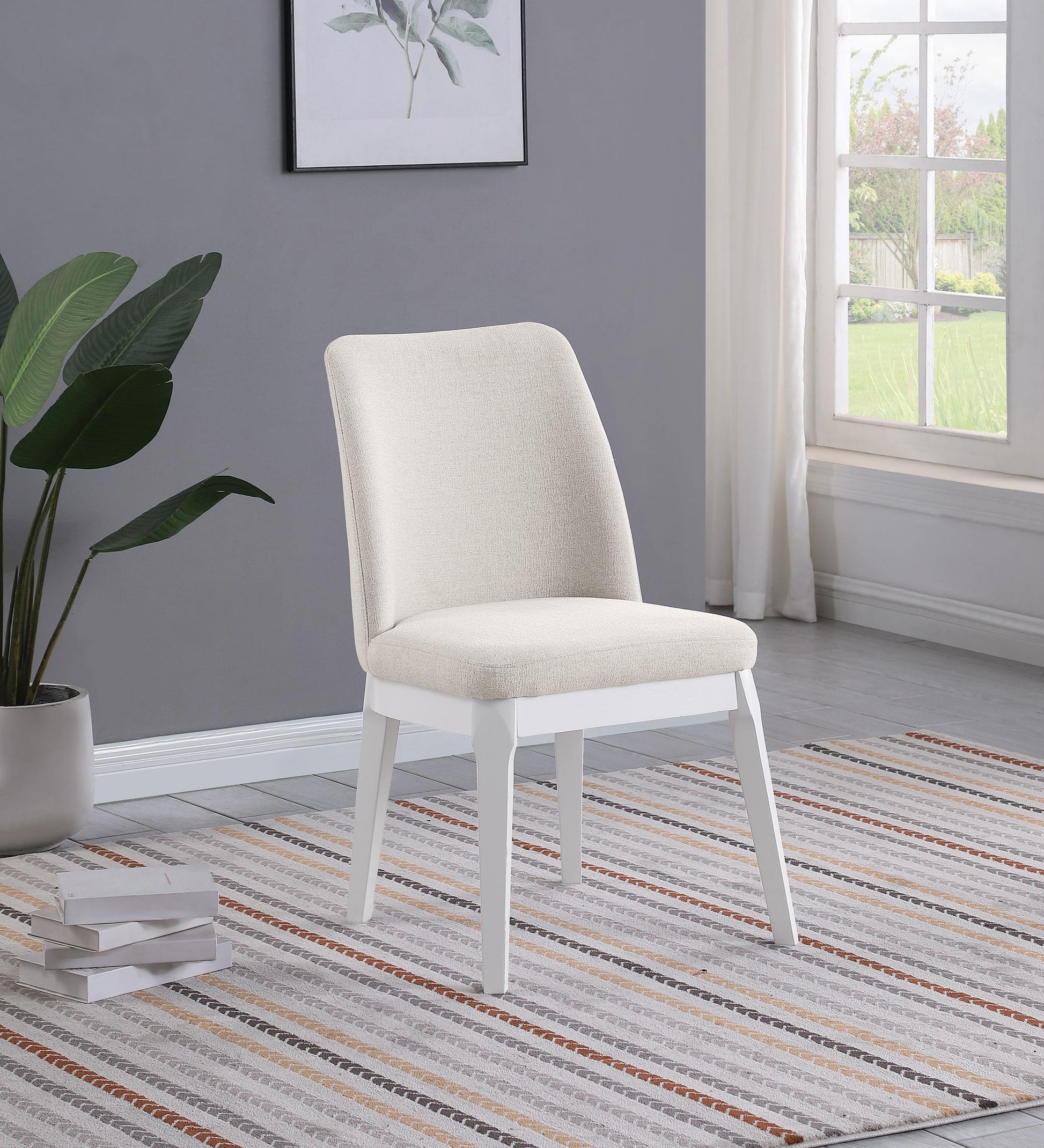 Meet the Carissa Upholstered Dining Side Chair Beige — a comfortable, versatile seating option for modern dining spaces. This set of two chairs brings a warm beige tone to your table and blends easily with a variety of decors. Built with everyday dining in mind, it's a practical addition to kitchens, dining rooms, or breakfast nooks.