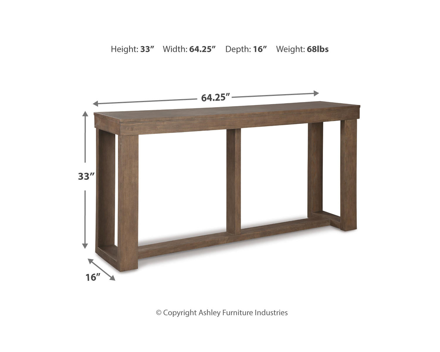 The Cariton Sofa/Console Table in gray offers versatile surface space for living rooms and entryways. It doubles as a supportive behind-the-sofa table or a sleek console, blending practicality with a restrained aesthetic for everyday living.