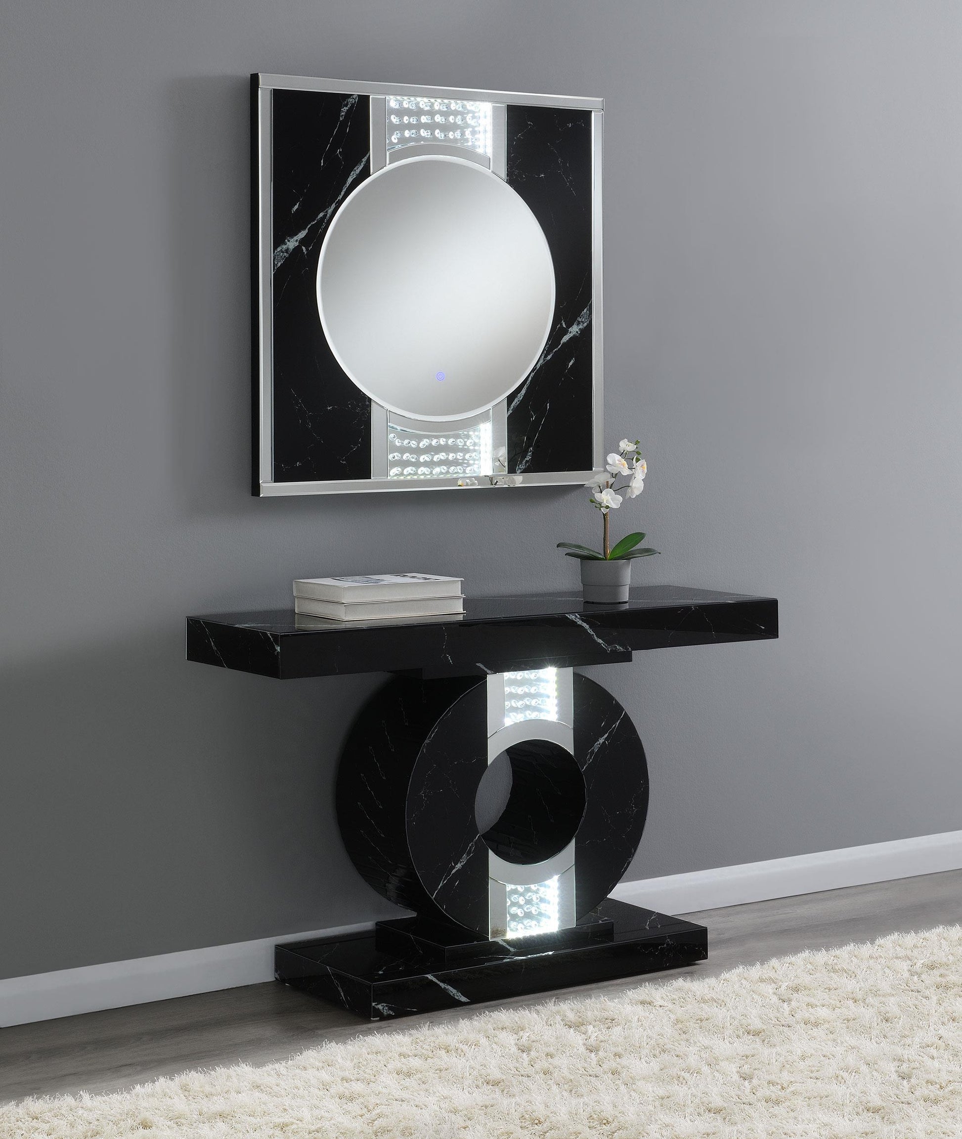 The Carter LED light wall mirror combines a bold, contemporary presence with practical illumination. With a 34 x 36 inch footprint and a sleek black finish, it enhances any bathroom, bedroom, or entryway while providing bright, even lighting for grooming and daily routines. This mirror is designed to be a stylish focal point that also boosts the perception of space and light in smaller rooms.