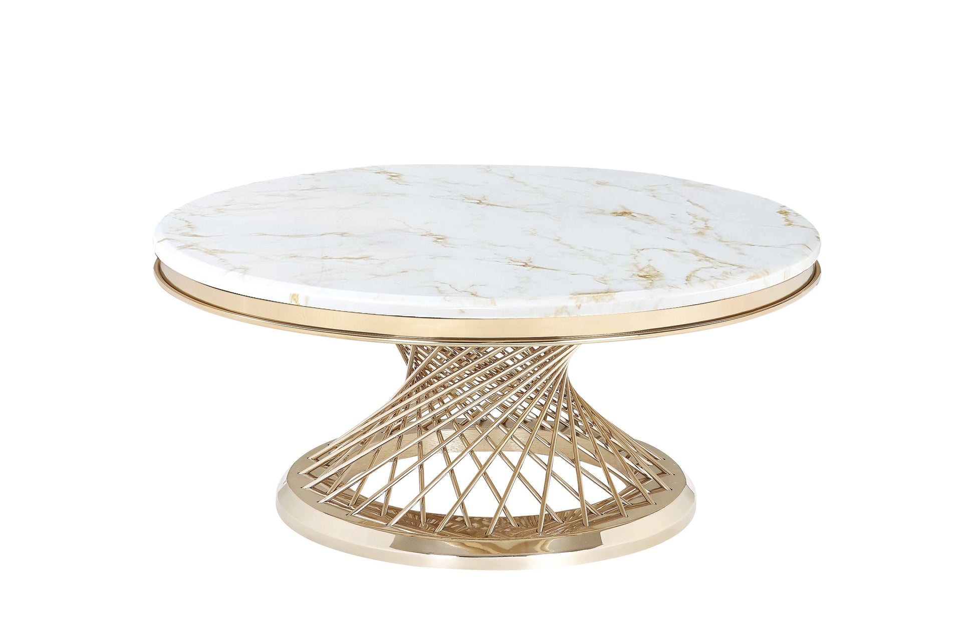 Meet the Carter Coffee Table—a round marble centerpiece that adds timeless elegance to any living space. Built for style-conscious homes, its round surface sits atop a luxurious golden wireframe base. The intricate design blends modern sophistication with classic charm, delivering a focal point with subtle opulence.