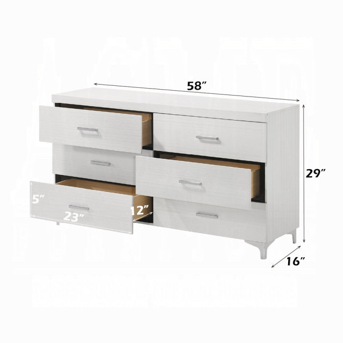 Meet the Casilda Dresser, a versatile storage piece designed to complete the Casilda bedroom collection. Finished in a crisp white, it coordinates with a wide range of color schemes and decor styles. Its understated metal legs lend a contemporary touch while keeping the look light and airy.