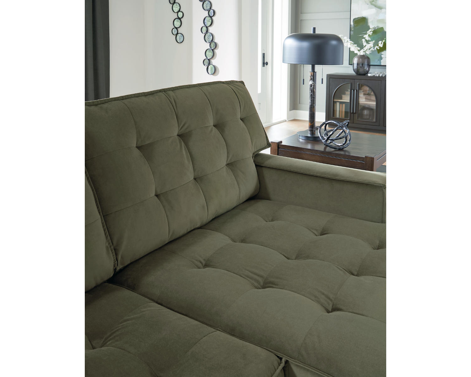 - Color & Upholstery: Olive upholstery that adds warmth and pairs well with a range of decors.