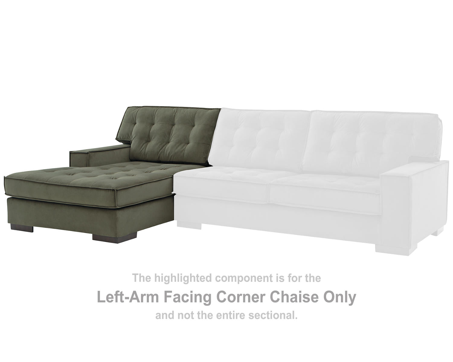 Introducing the Caspian-Town Left-Arm Facing Corner Chaise in olive. This LAF corner chaise brings comfortable seating to modern living spaces where flexibility is key. Its warm olive tone and streamlined silhouette anchor a sectional with effortless style.