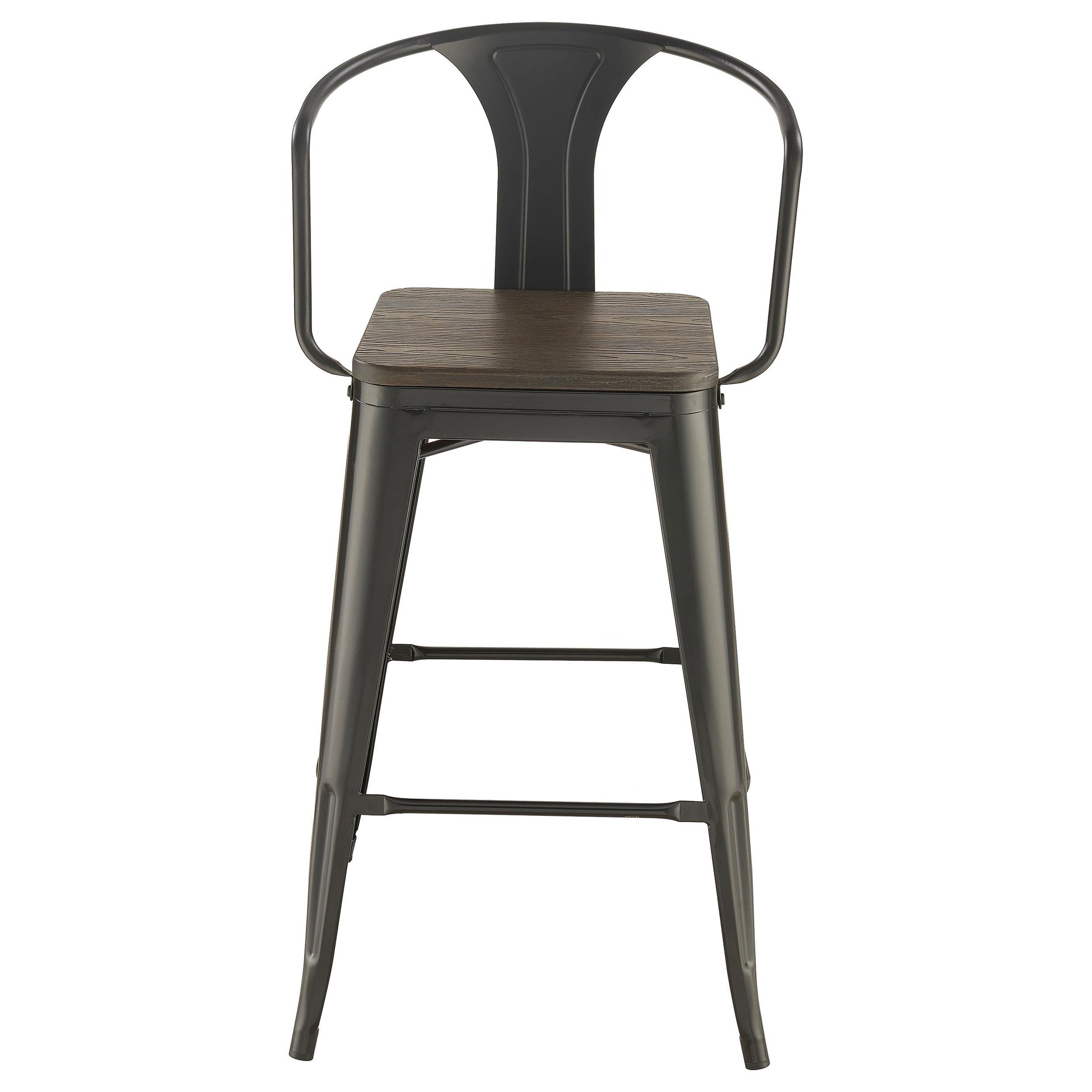 Elevate your home bar, kitchen island, or dining area with the Cavalier Metal Bar Chair in Dark Elm and Matte Black. This paired set blends industrial style with everyday practicality, delivering comfortable seating you can rely on for everyday meals and social moments.