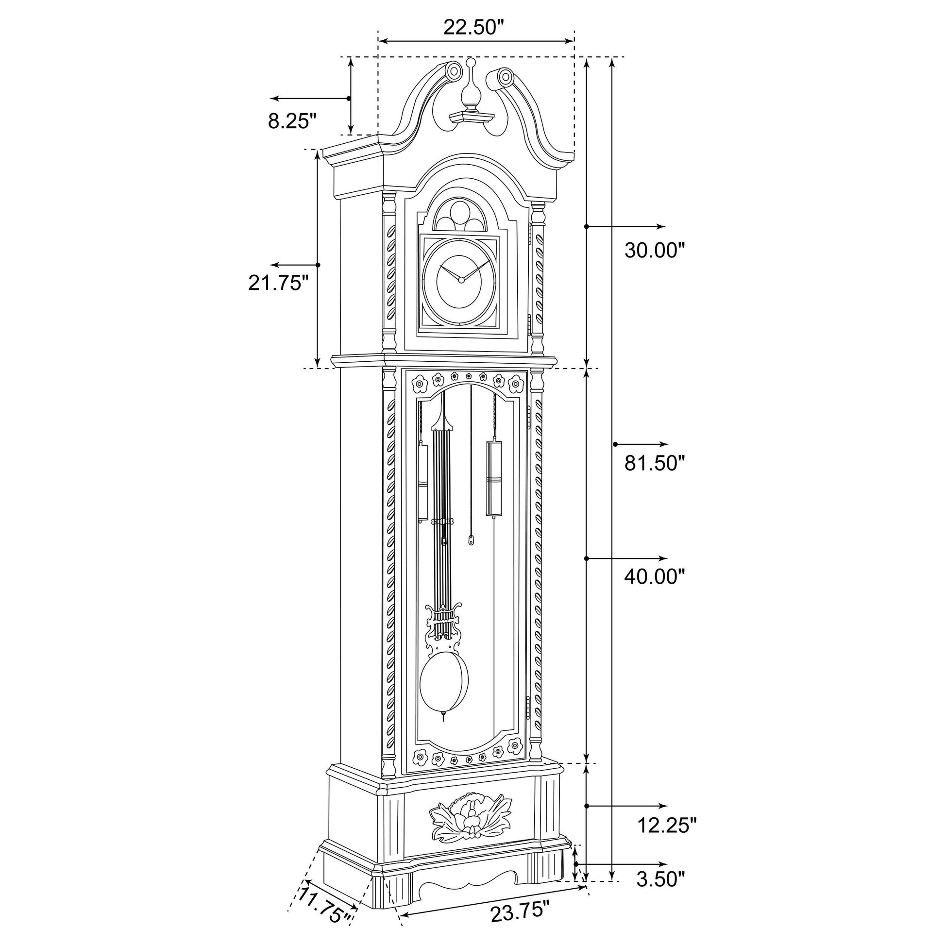 Introducing the Cedric Grandfather Clock with Adjustable Chime in Golden Brown — a timeless timepiece that blends classic elegance with modern convenience. Ideal for traditional living rooms, foyers, or libraries, it adds a warm, inviting presence while offering a customizable chime to suit any occasion. This clock delivers heirloom-worthy style and reliable timekeeping in one refined package.
