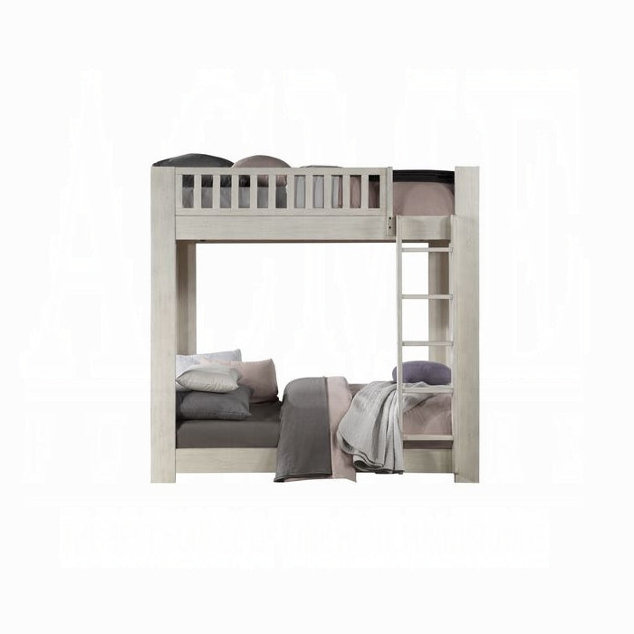 - Twin/Twin bunk configuration with vertically slatted guardrails