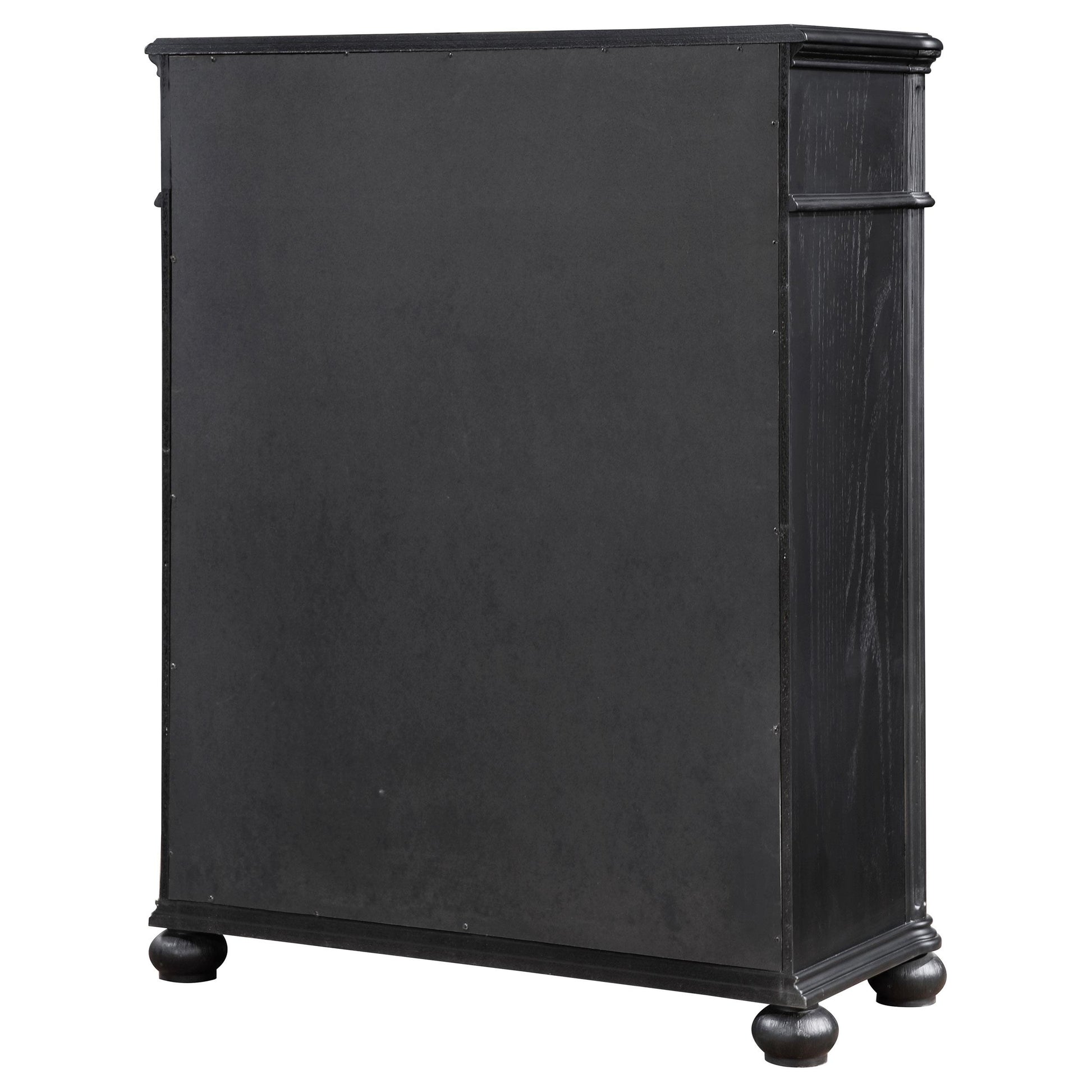 - Five roomy drawers provide organized storage for clothing and small items.