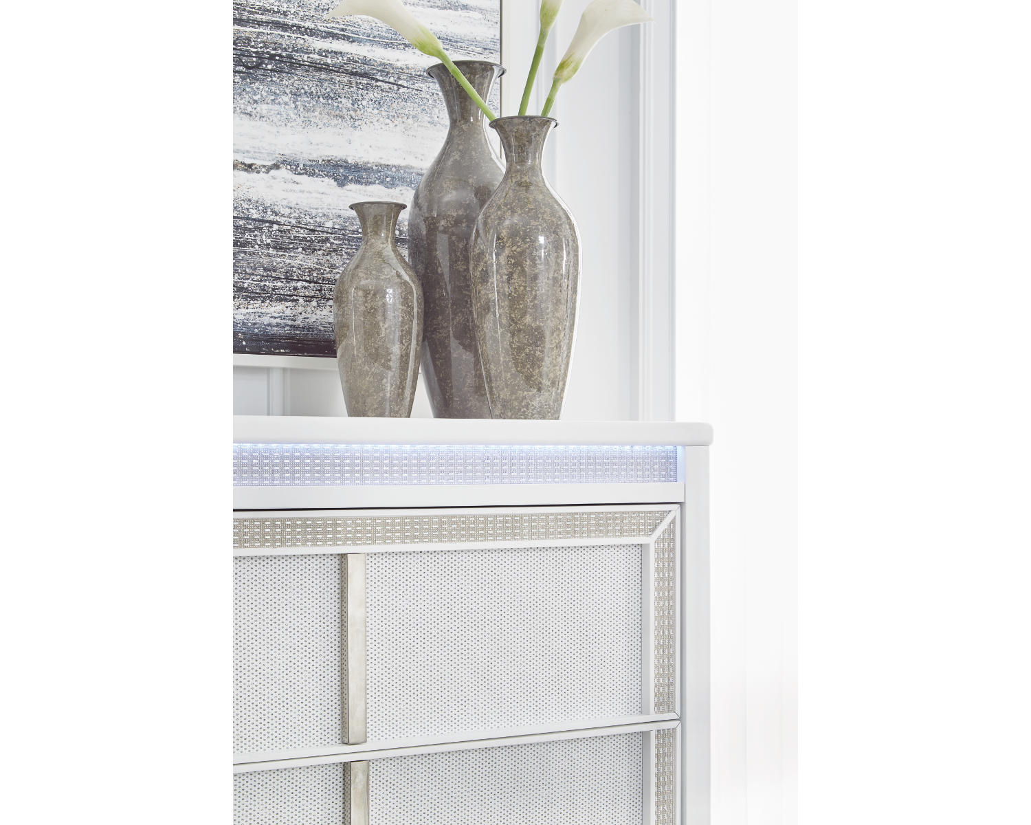 Meet the Chalanna Chest of Drawers, a practical storage solution designed for bedrooms, guest rooms, or any space needing organized clothing and essentials. This five-drawer white chest combines clean lines with versatile storage to fit a range of decor styles. Built for everyday use, it offers reliable function with a timeless look.