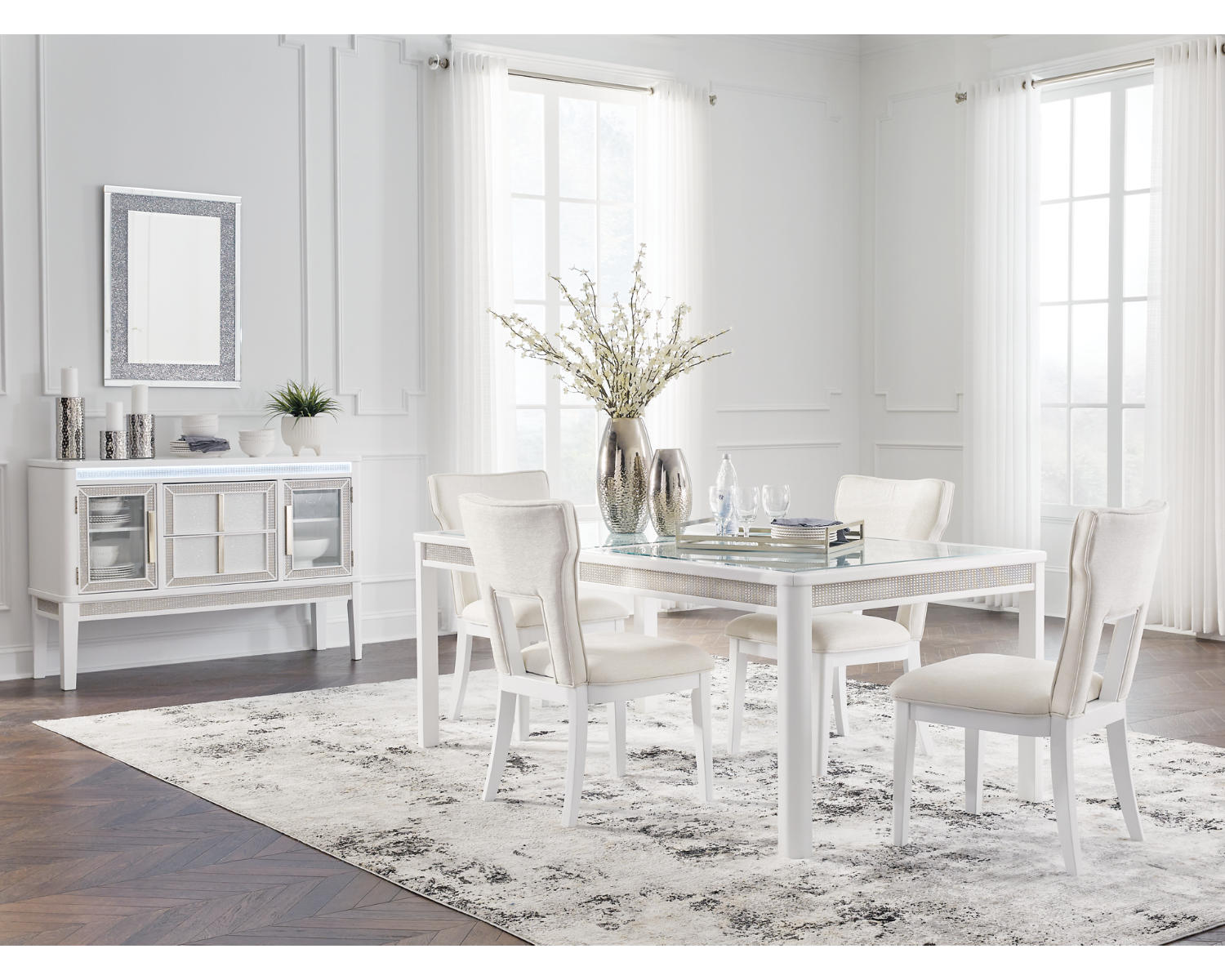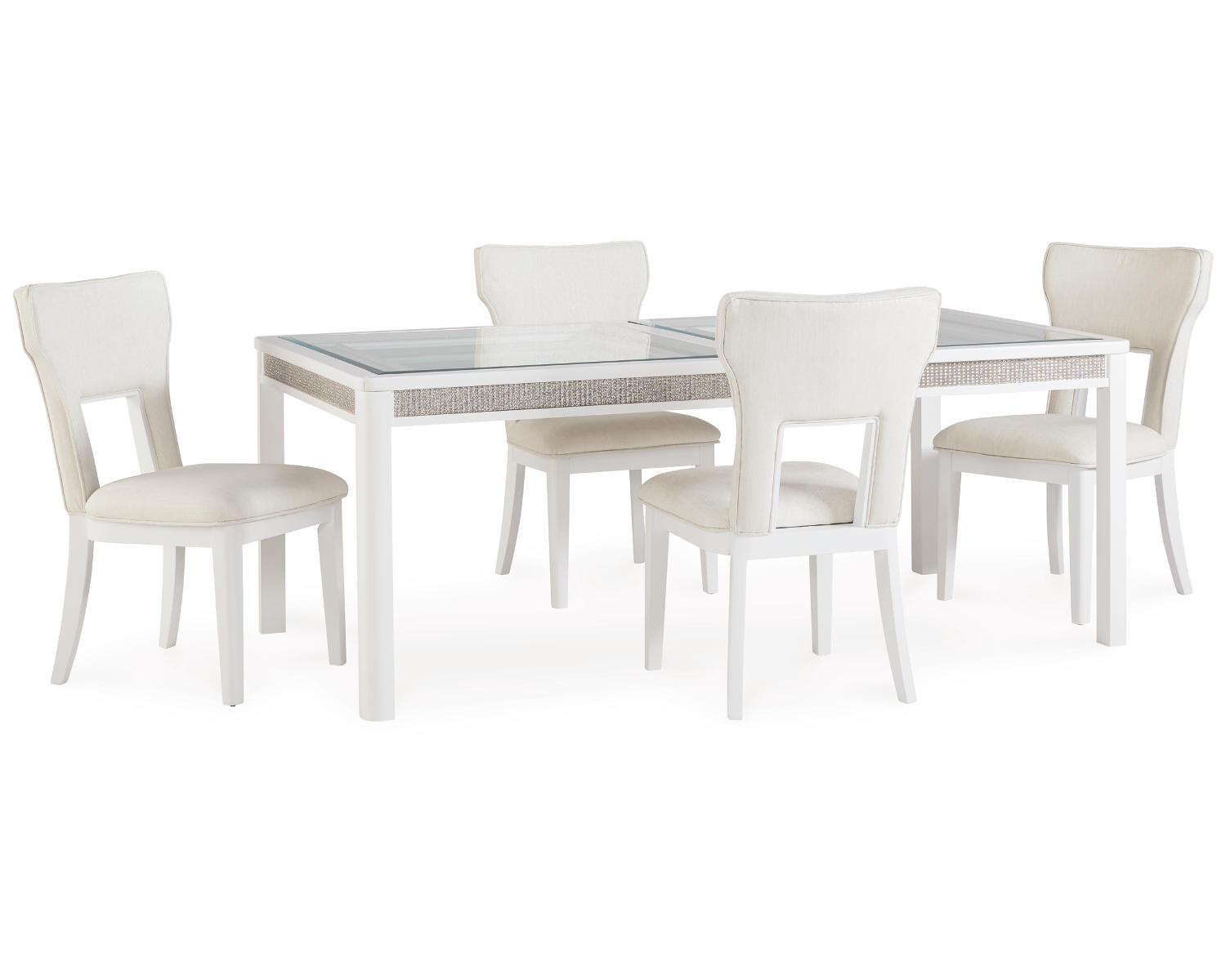 Meet the Chalanna Dining Table and 4 Chairs — a versatile dining set designed for modern homes. This white dining set brings a clean, minimalist aesthetic to any dining room or kitchen nook, while keeping everyday meals comfortable and convenient. It’s ideal for small to medium spaces that value both style and practicality.