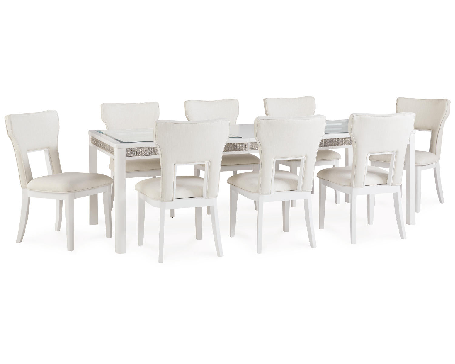 - Includes table and eight chairs, providing a seamless eight-seat dining solution.