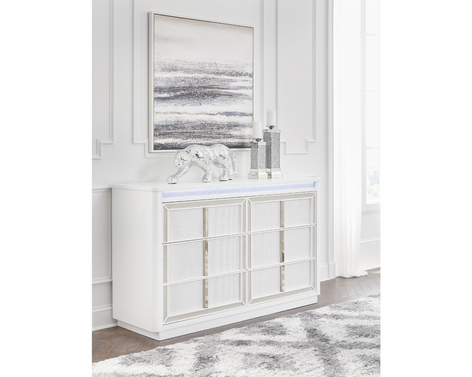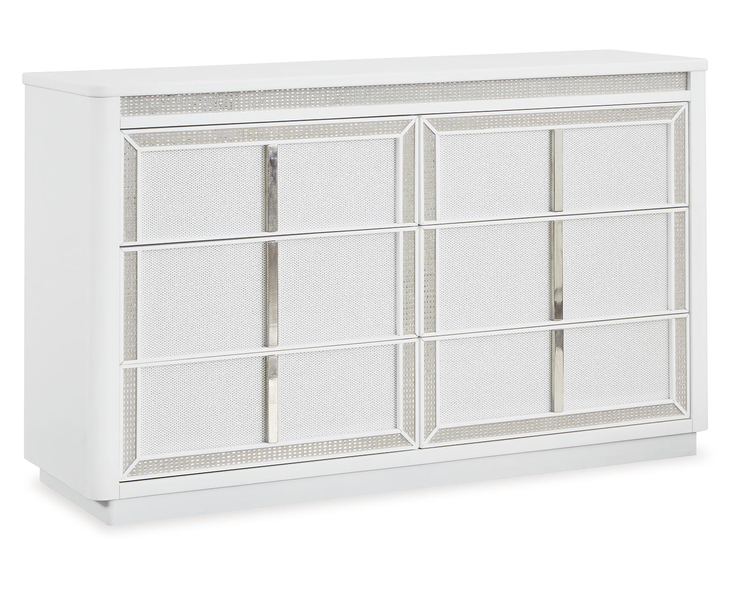 Chalanna Dresser is a clean, white dresser designed for modern bedrooms. It provides practical storage for clothes and personal items, helping you keep surfaces free of clutter. With its timeless finish and simple, versatile silhouette, it fits a wide range of décor styles—from minimalist to contemporary.