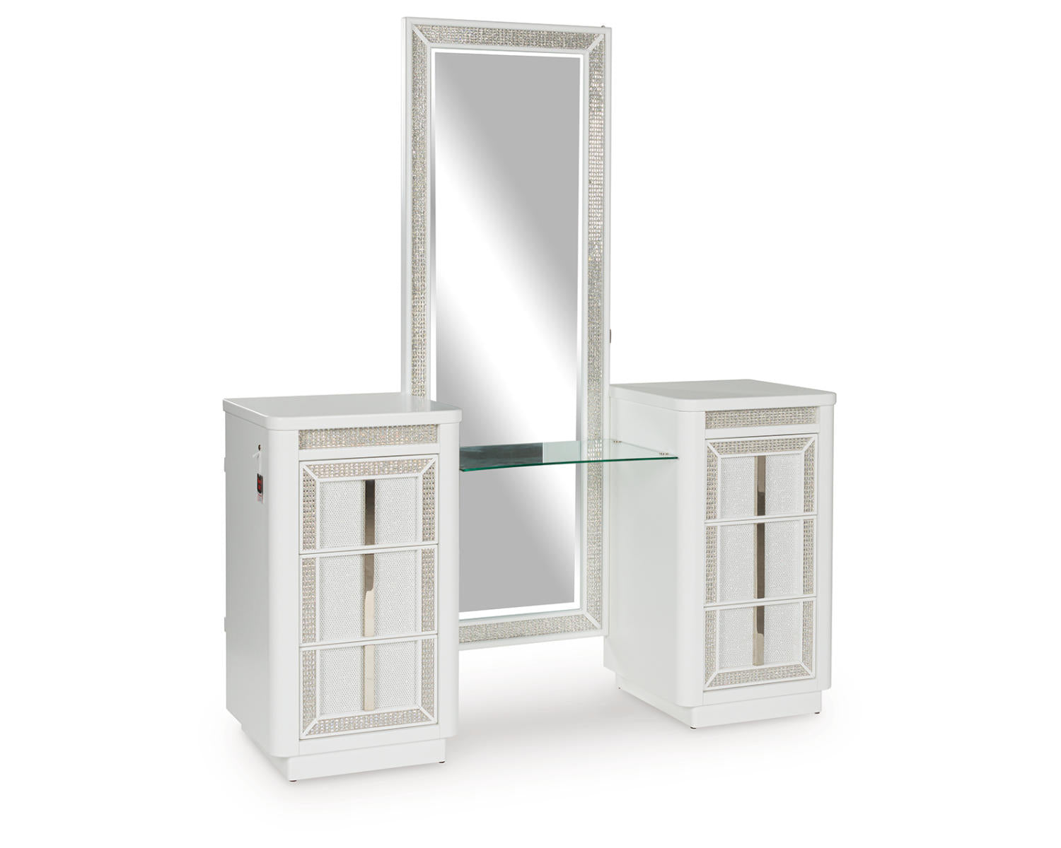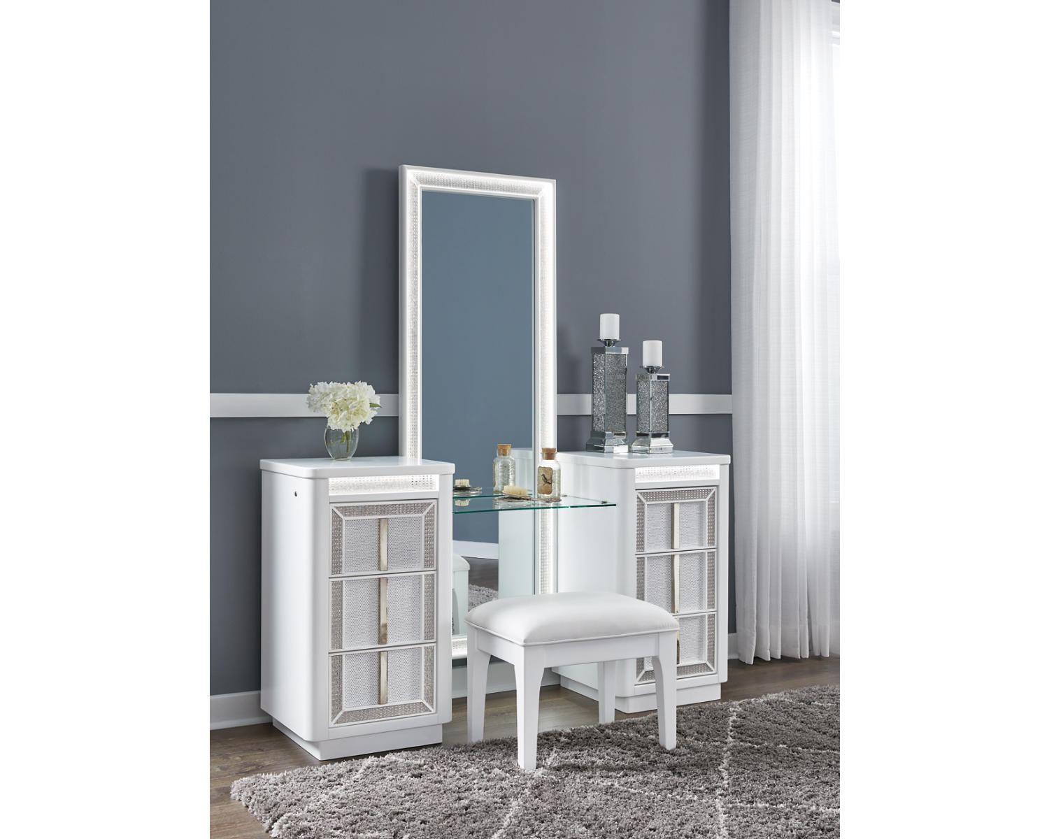 Built for everyday use, the Chalanna Vanity with Mirror emphasizes durable construction and a resilient finish that stands up to regular use. The integrated mirror stays aligned with the vanity for dependable use. We offer competitive pricing in its category, delivering stylish functionality at a value-friendly price point. Easy to maintain, the white surface cleans with a quick wipe to keep it looking fresh.