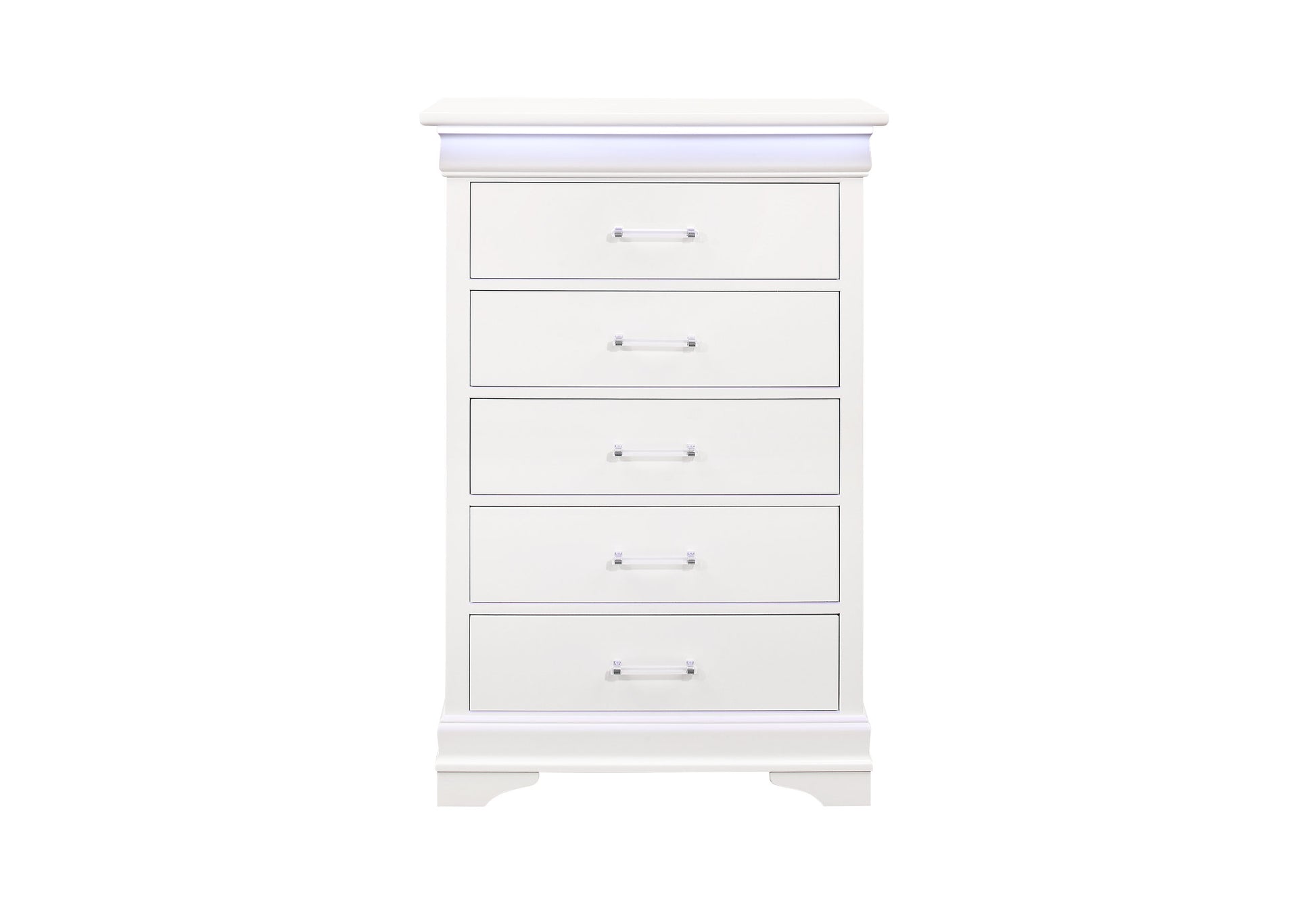 Meet the Charlie White Chest with LED—an elegant storage solution designed for bedrooms that value clean lines and practical lighting. This compact chest combines everyday organization with a soft, ambient glow, helping you locate items at night without turning on bright overhead lights. Its white finish and contemporary silhouette fit a wide range of décor.