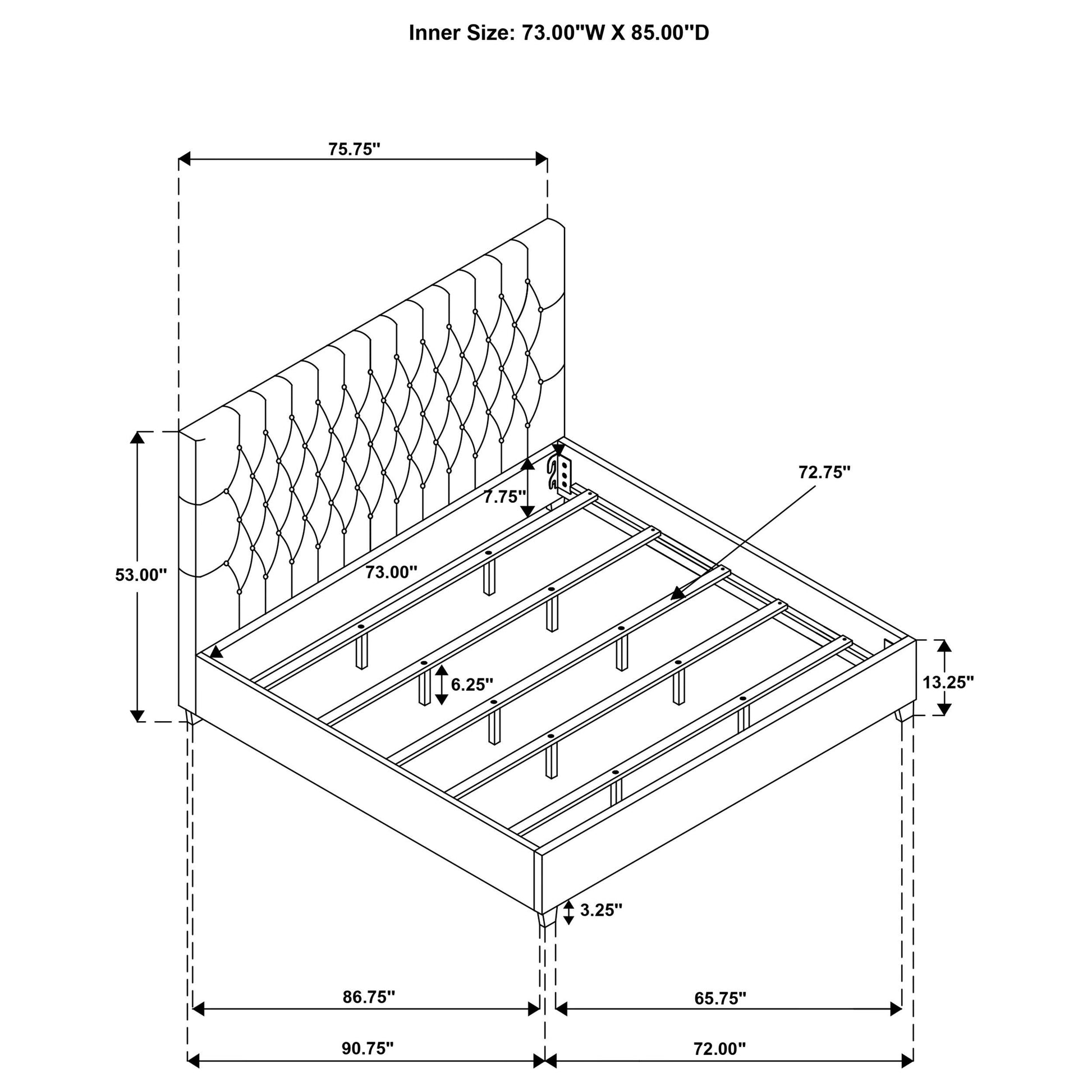 Meet Chloe, a chic upholstered California King panel bed in charcoal that brings a refined, contemporary look to any bedroom. Its streamlined silhouette and neutral tone make it easy to pair with a wide range of decor styles, while offering a comfortable, generous sleep surface with a true California King footprint.