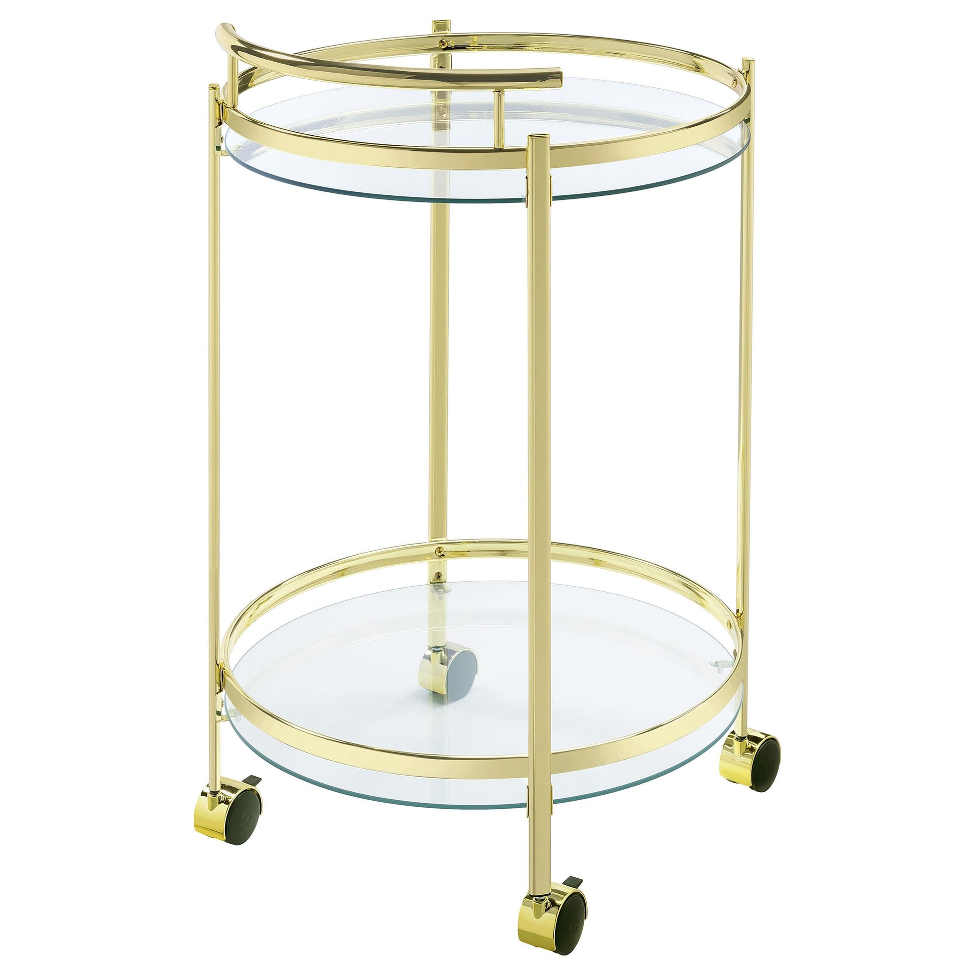 Chrissy 2-tier Round Glass Shelf Metal Bar Cart Brass