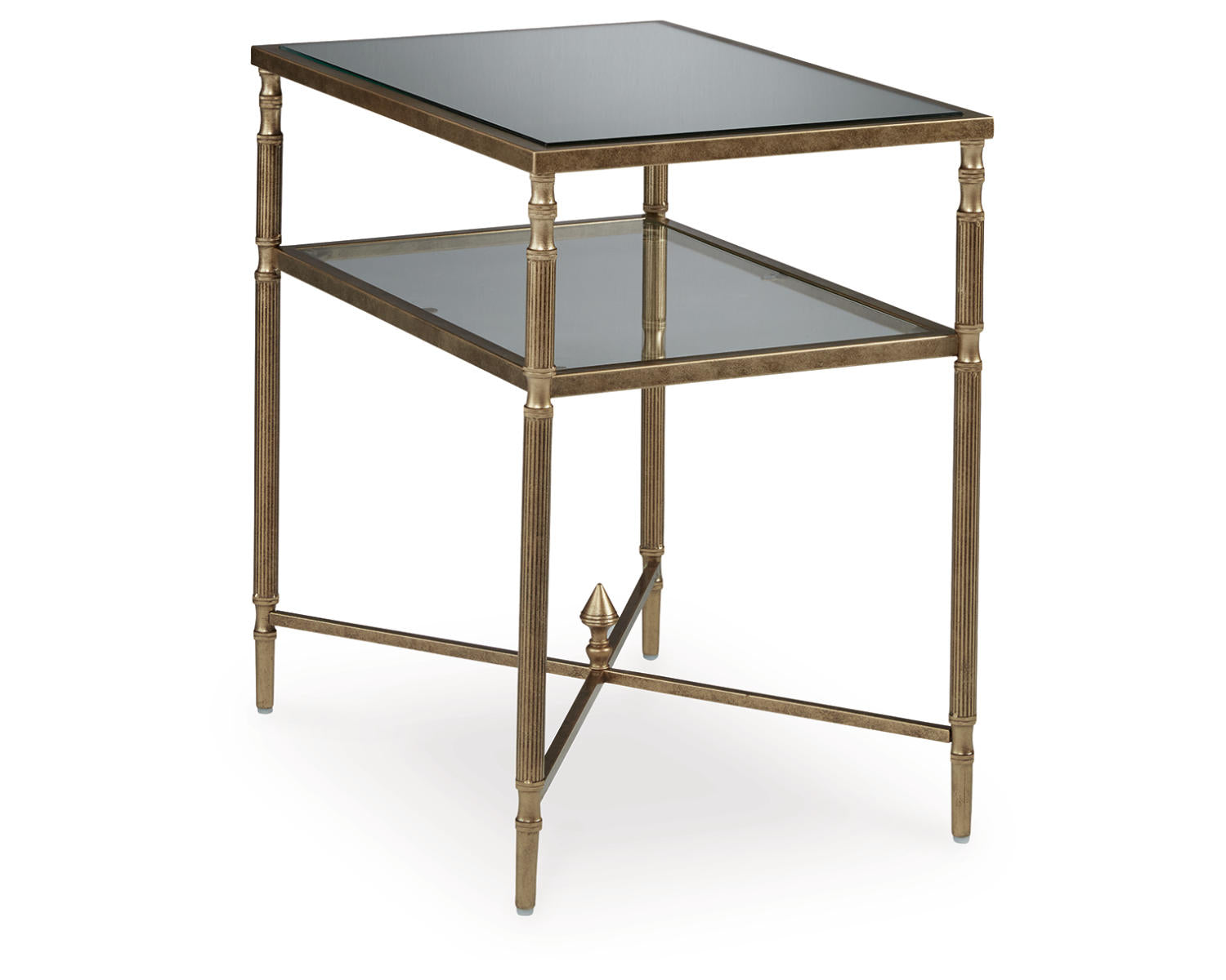 Discover the Cloverty End Table, a functional and stylish addition to living rooms, bedrooms, or entryways. This rectangular end table features an elegant aged gold finish that elevates diverse decors from classic to contemporary. Built for everyday use, it offers a compact surface to hold lamps, remotes, or a favorite book, keeping essentials within arm's reach.