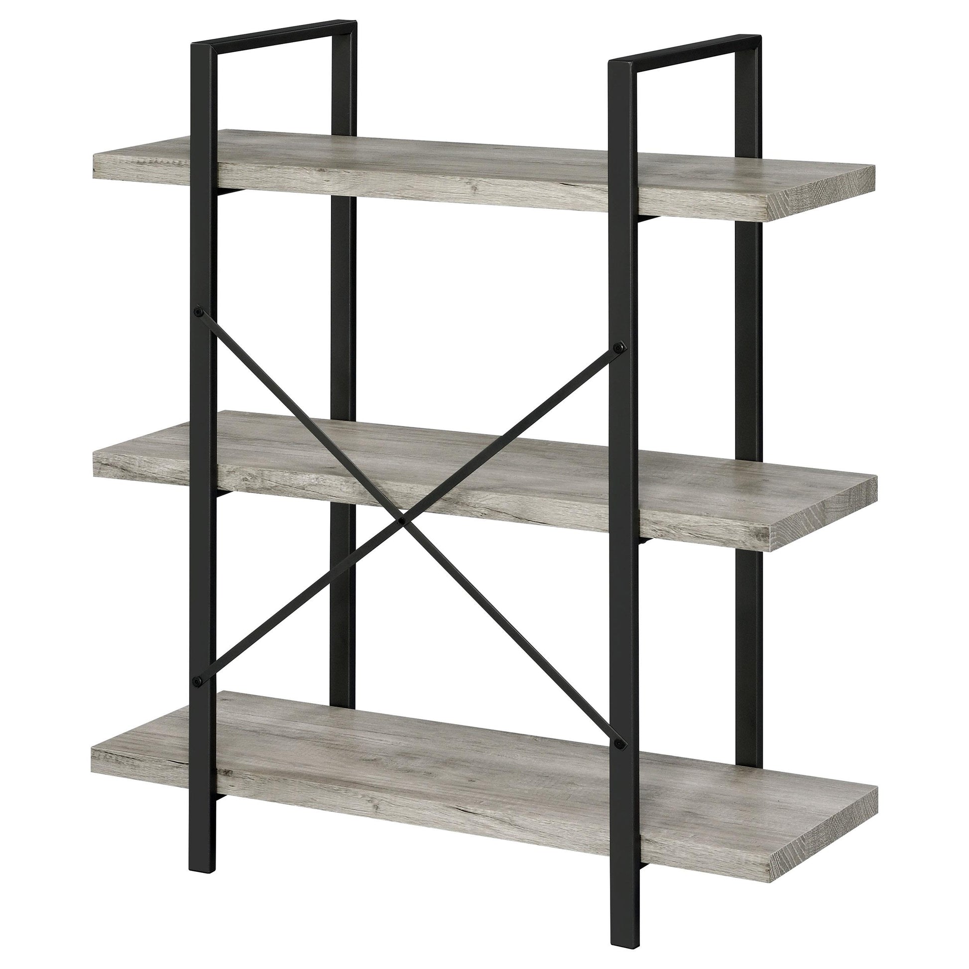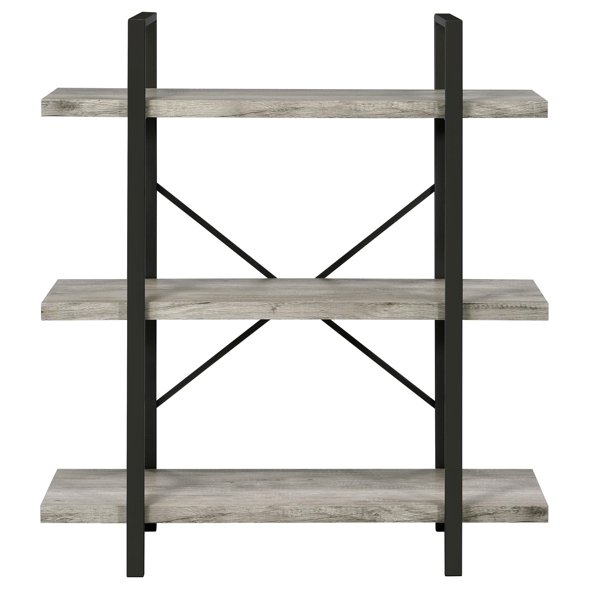 Cole 40-inch 3-Shelf Bookshelf — Grey Driftwood & Gunmetal