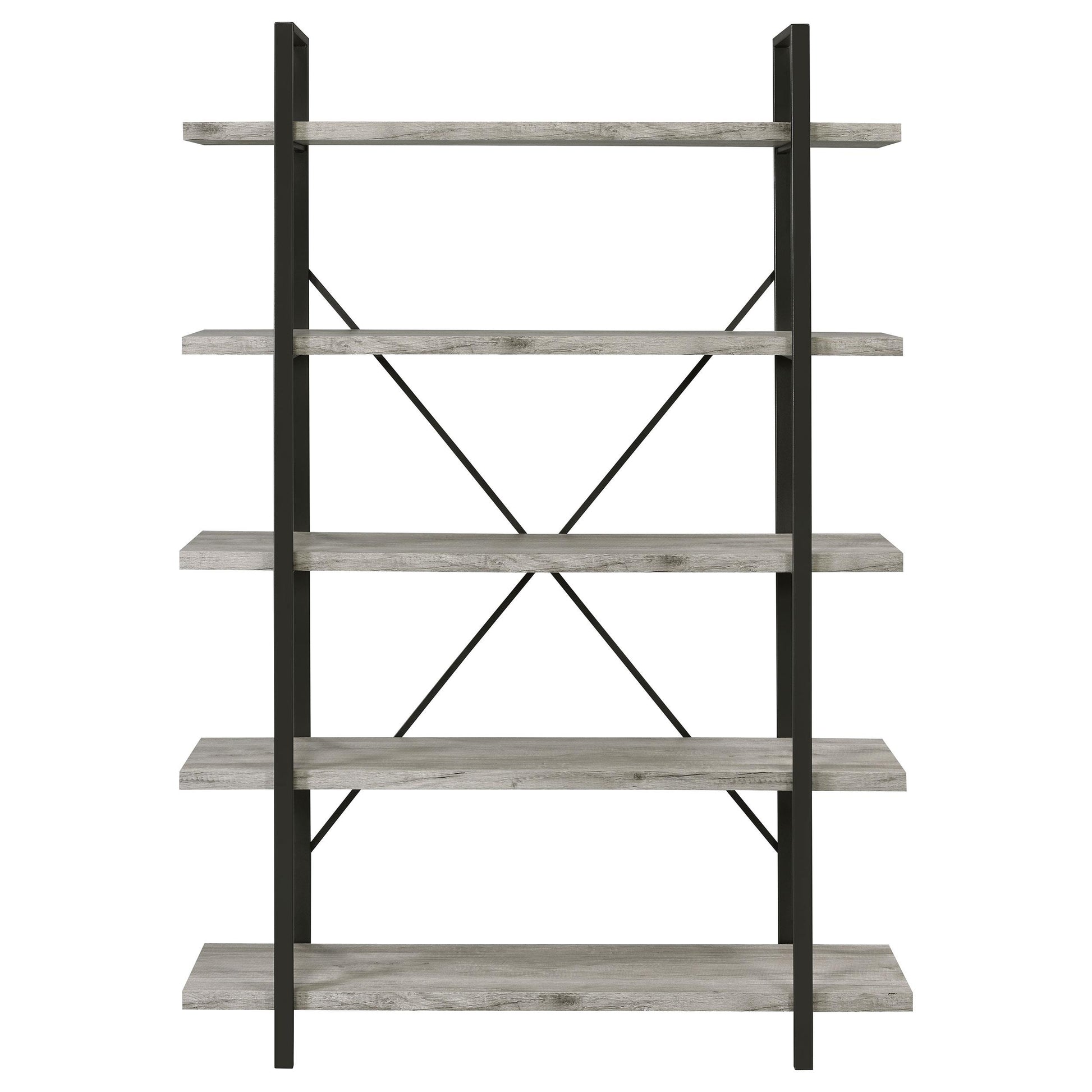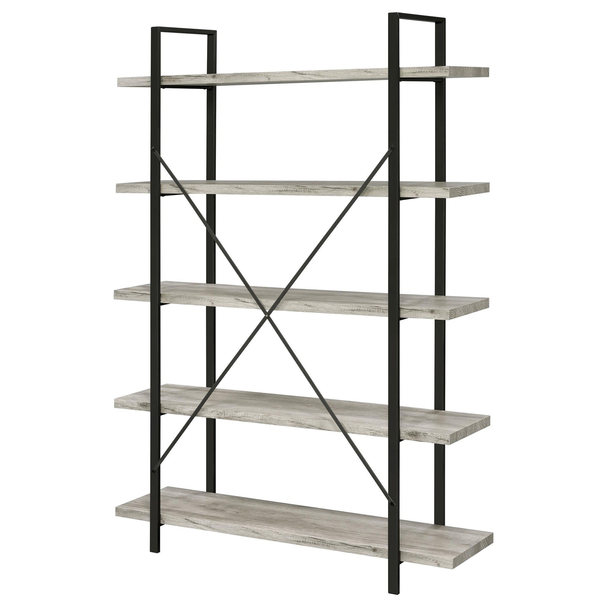 Cole 70-inch 5-shelf Bookshelf Grey Driftwood and Gunmetal