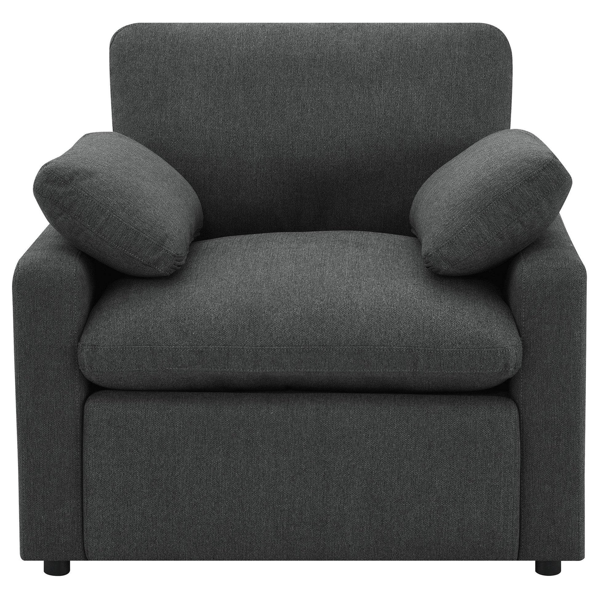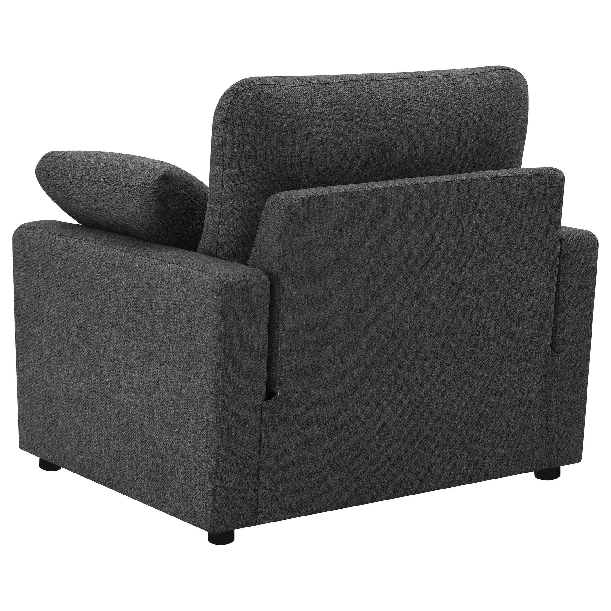 - Upholstery: dark grey fabric that looks refined and stays easy to clean