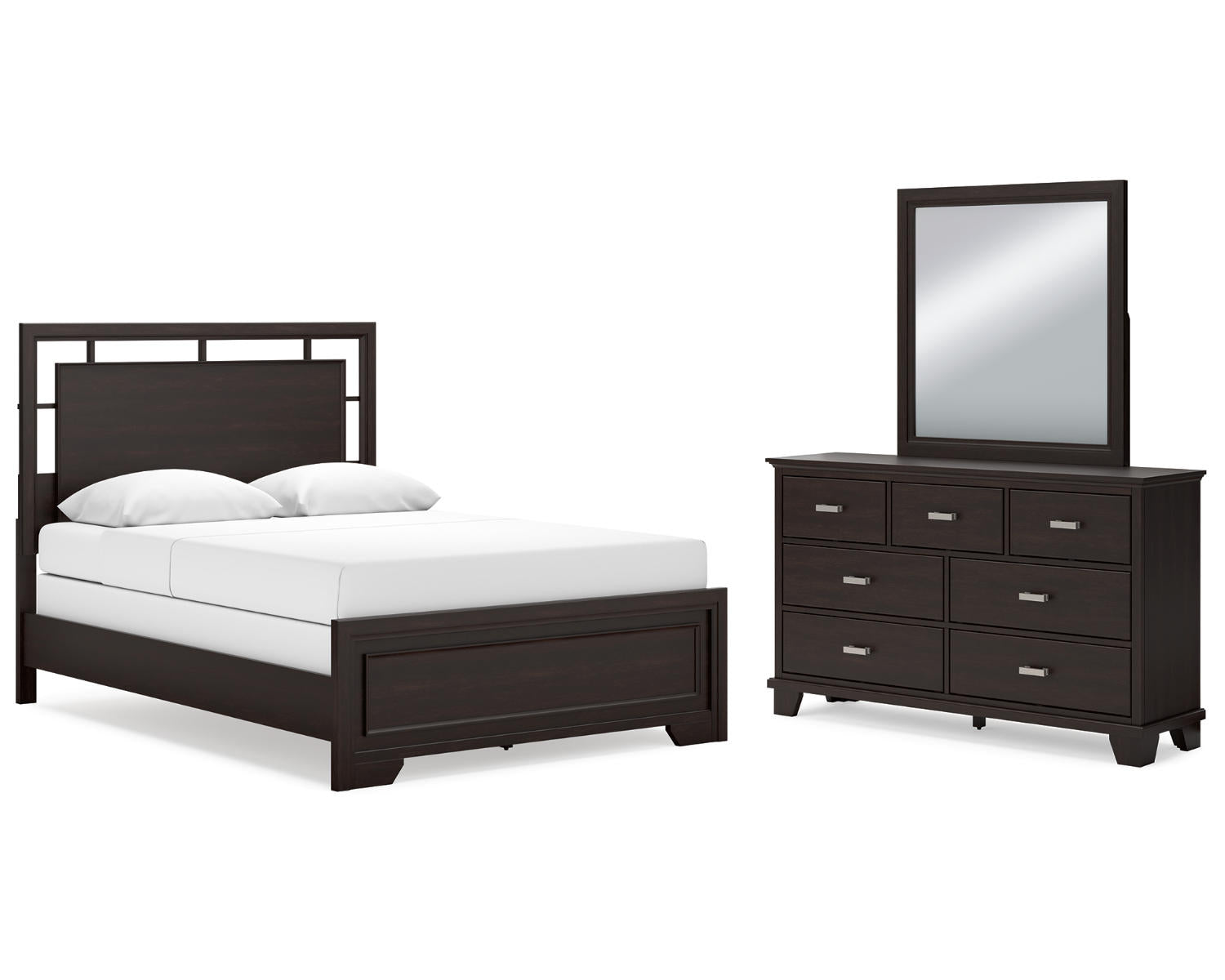 Introducing the Covetown bedroom collection—the complete queen panel bed set with a matching dresser and wall mirror in a rich dark brown finish. This coordinated trio is designed for anyone seeking a timeless, cohesive look that fits a range of styles and room sizes.