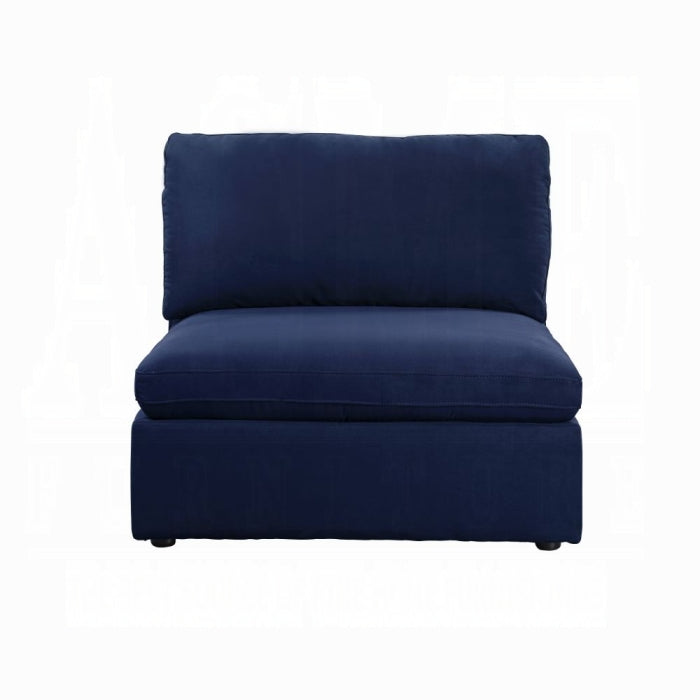 Meet the Crosby Modular Armless Chair, a versatile seating piece designed for modern living spaces. This armless chair is part of the Crosby reversible modular system, enabling you to rearrange setup to fit your space and lifestyle. Upholstered in a dreamy, deep blue fabric, it brings a calm, contemporary touch to any room.