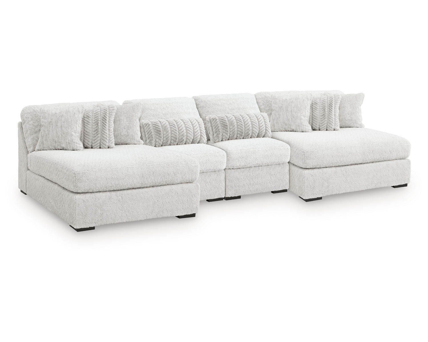 Meet the Cuddle Plush 4-Piece Sectional with Chaise in Arctic. This modular seating ensemble is ideal for families, entertaining, and everyday lounging. With its soft plush upholstery and flexible layout, it makes any living room feel inviting and comfortable.