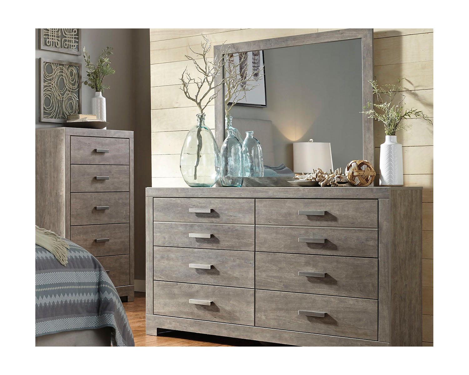 The Culverbach Dresser and Mirror is a coordinated gray bedroom set designed to organize your space with style. Perfect for adults and guests alike, it combines a clean, contemporary look with practical storage and a welcoming presence in any bedroom. Built for everyday use, it adds a refined focal point to your room.