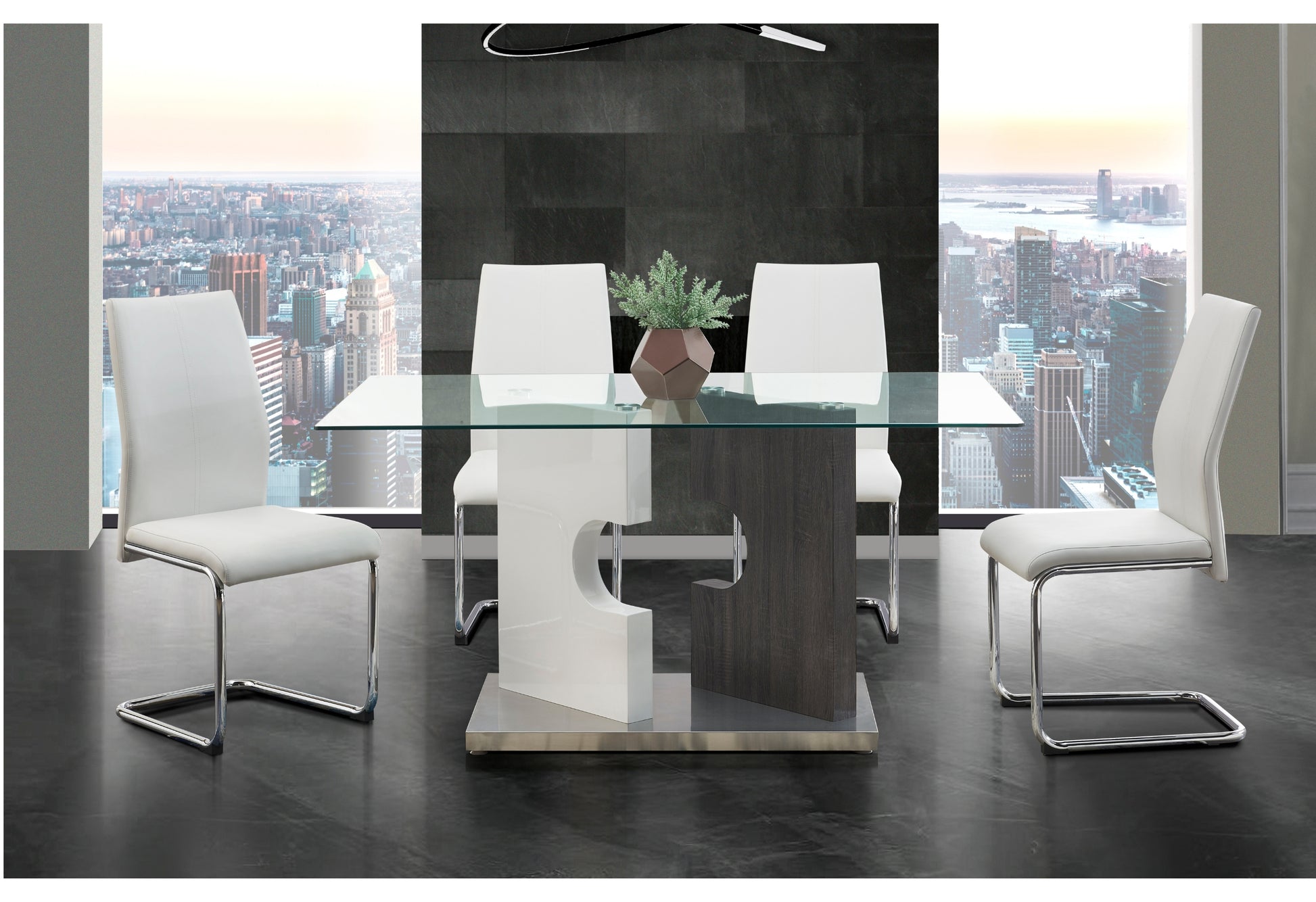 Elevate your dining space with a white dining table set that includes the table and four DC chairs. Designed for everyday family meals and casual gatherings, this modern ensemble pairs a bright white finish with clean lines to fit a variety of decor styles.