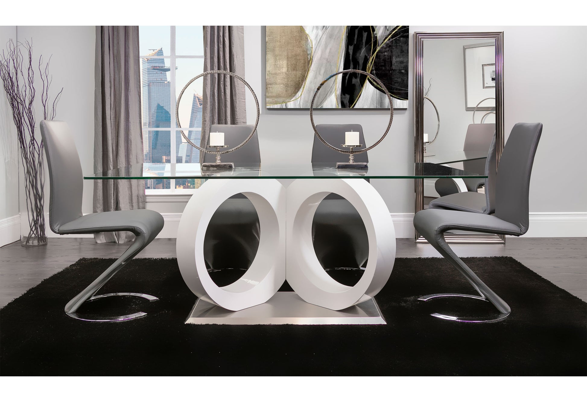 - Includes: 1 D9002DT dining table + 4 D9002DC chairs