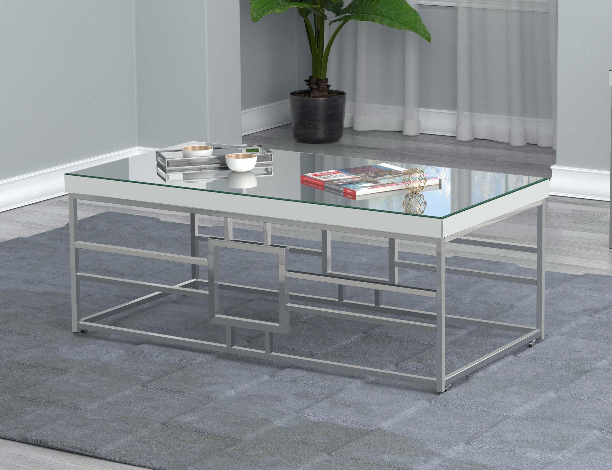 Dafina Rectangular Mirrored Top Coffee Table Chrome
