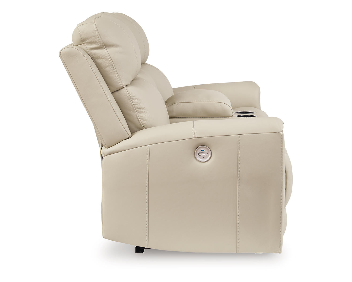 Experience effortless relaxation with the Dahlmoore Power Reclining Loveseat with Console. This almond-toned loveseat is ideal for living rooms, family rooms, or home theaters, offering comfortable seating for two with convenient built-in features.