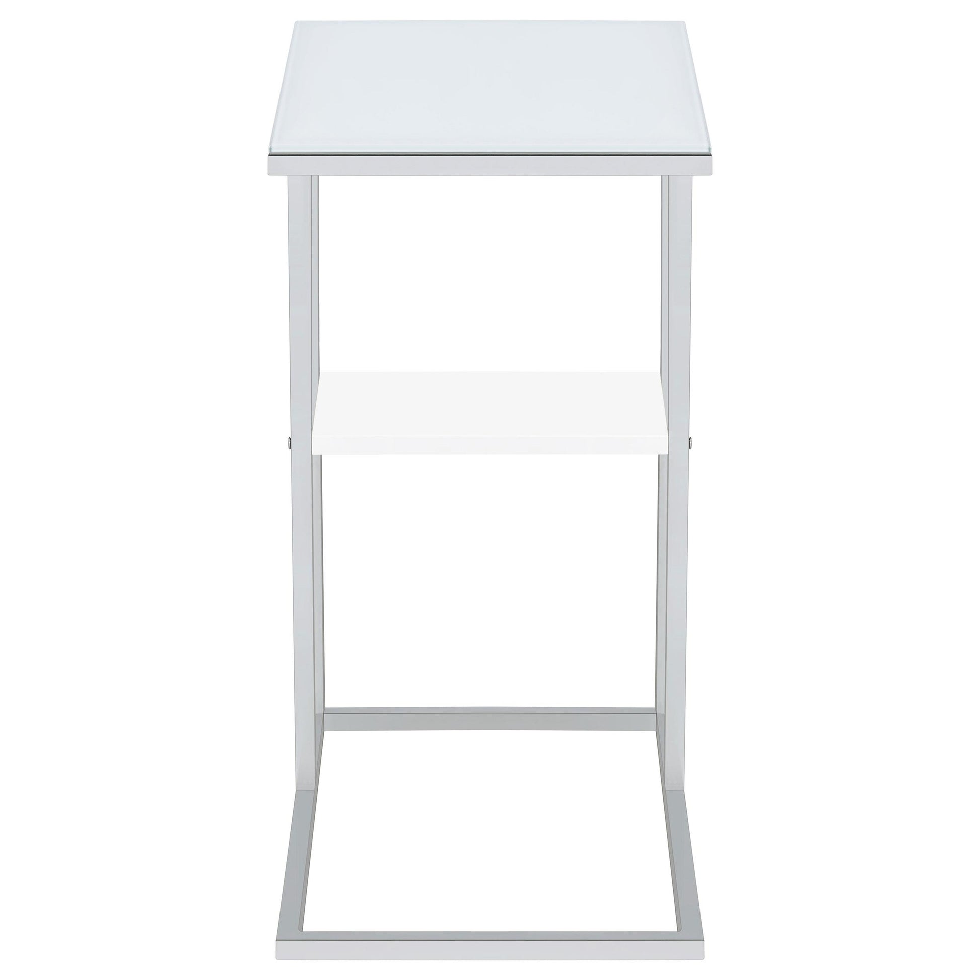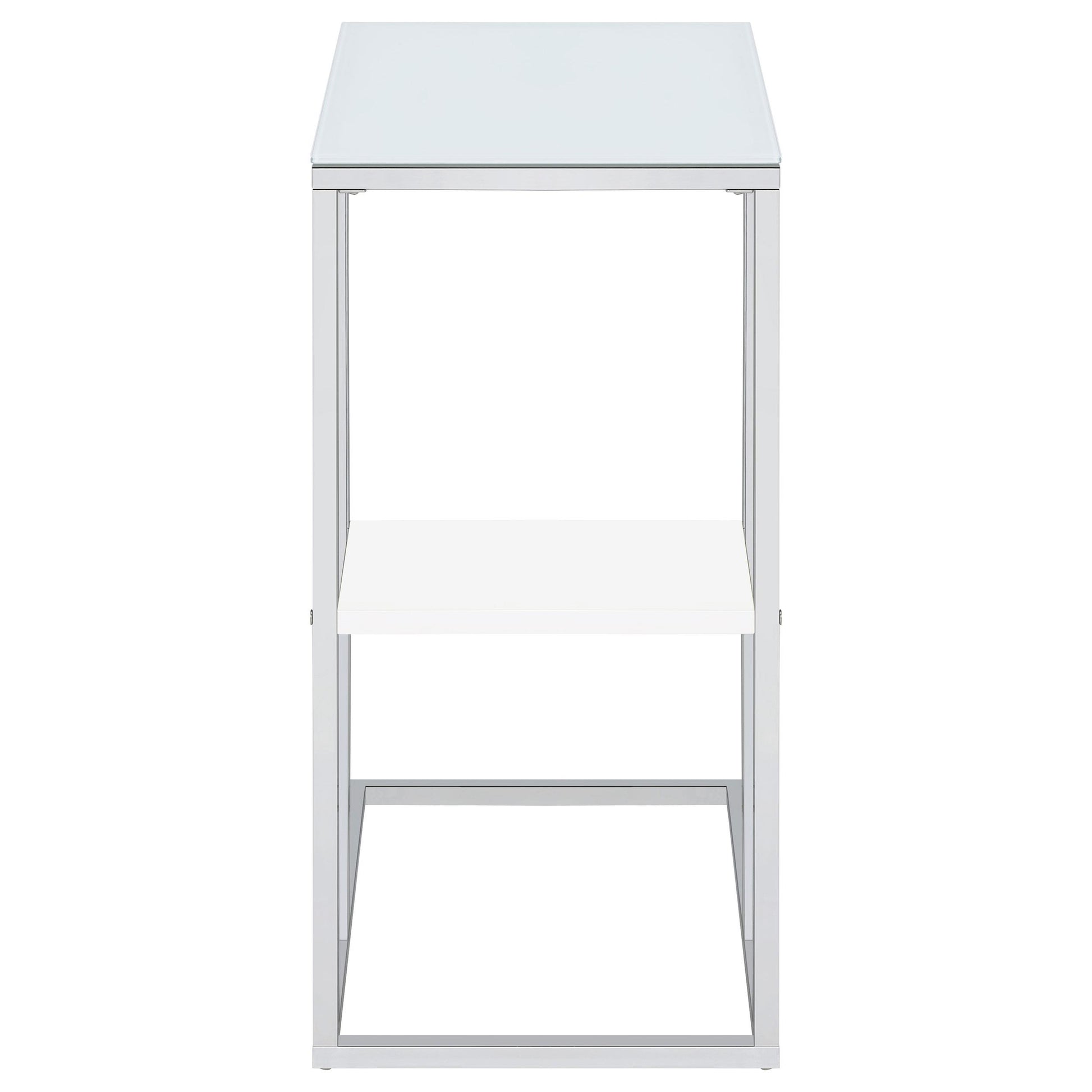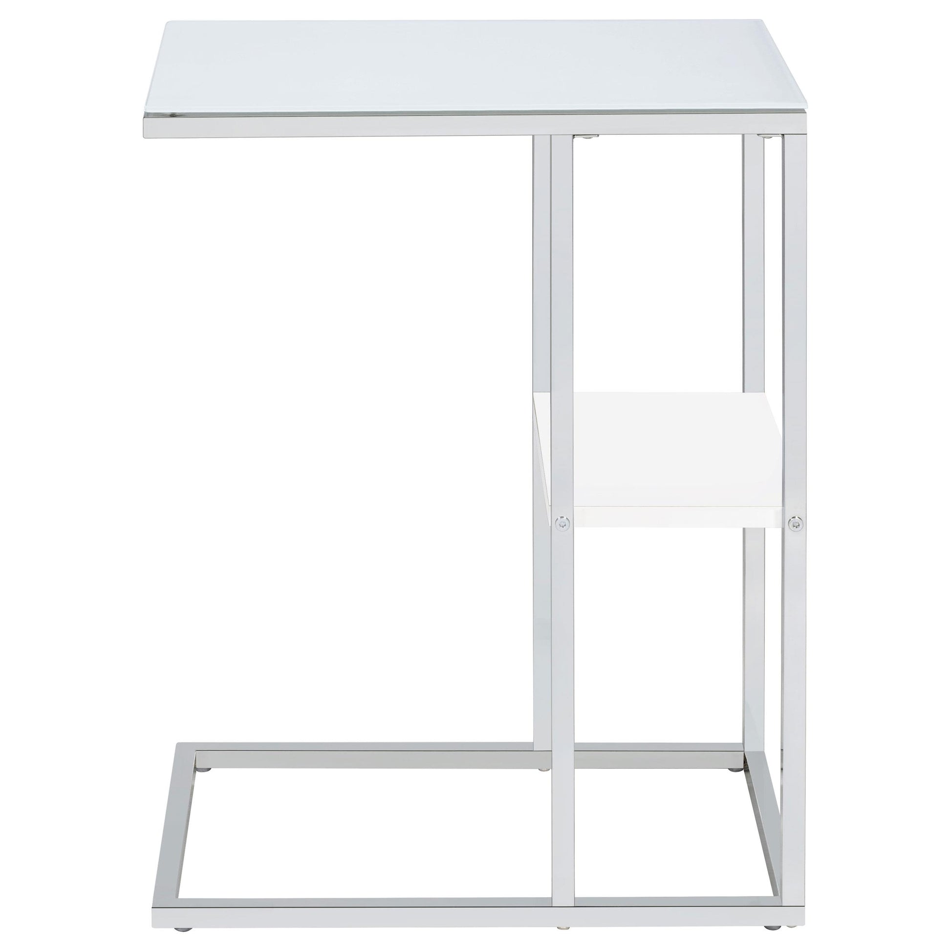 Daisy Glass Top C-Shaped Sofa Side Table White and Chrome